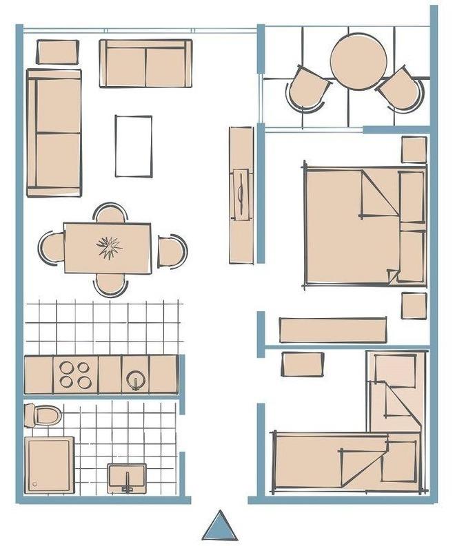 Willkommen im Aquamarina - Urlaub für die ganze Familie! Die gemütliche ca. 49m² große Ferienwohnung befindet sich in der vierten Etage (Aufzug vorhanden) und verfügt über zwei getrennte Schlafzimmer und einen sonnigen Wohn-Essbereich. Das Kinderzimmer ist mit einem Etagenbett ausgestattet - ideal für zwei Kinder oder Teenager. Das Elternschlafzimmer verfügt über ein gemütliches Doppelbett (ca. 160 x 200 cm).