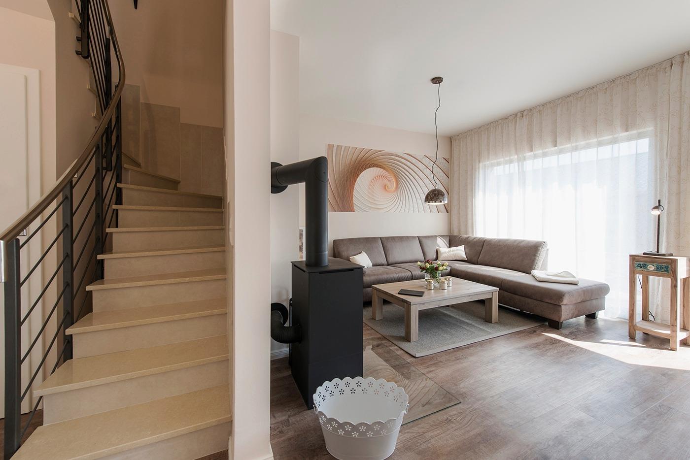 Die exklusiv ausgestattete Ferienwohnung im edlen Country/Vintage-Stil bietet Ihnen auf zwei Ebenen mit 106m² alles, was Sie sich für einen besonderen Urlaub wünschen. Alle Räume verfügen über bodentiefe Fenster mit Zugang zur Terrasse, Balkon oder Loggia, sind lichtdurchflutet und familienfreundlich eingerichtet. Fühlen Sie sich willkommen und genießen Sie viele Mee(h)rmomente, egal ob beim Sonnenbad auf der großzügigen Terrasse oder nach einem Saunagang vor dem Kamin.
