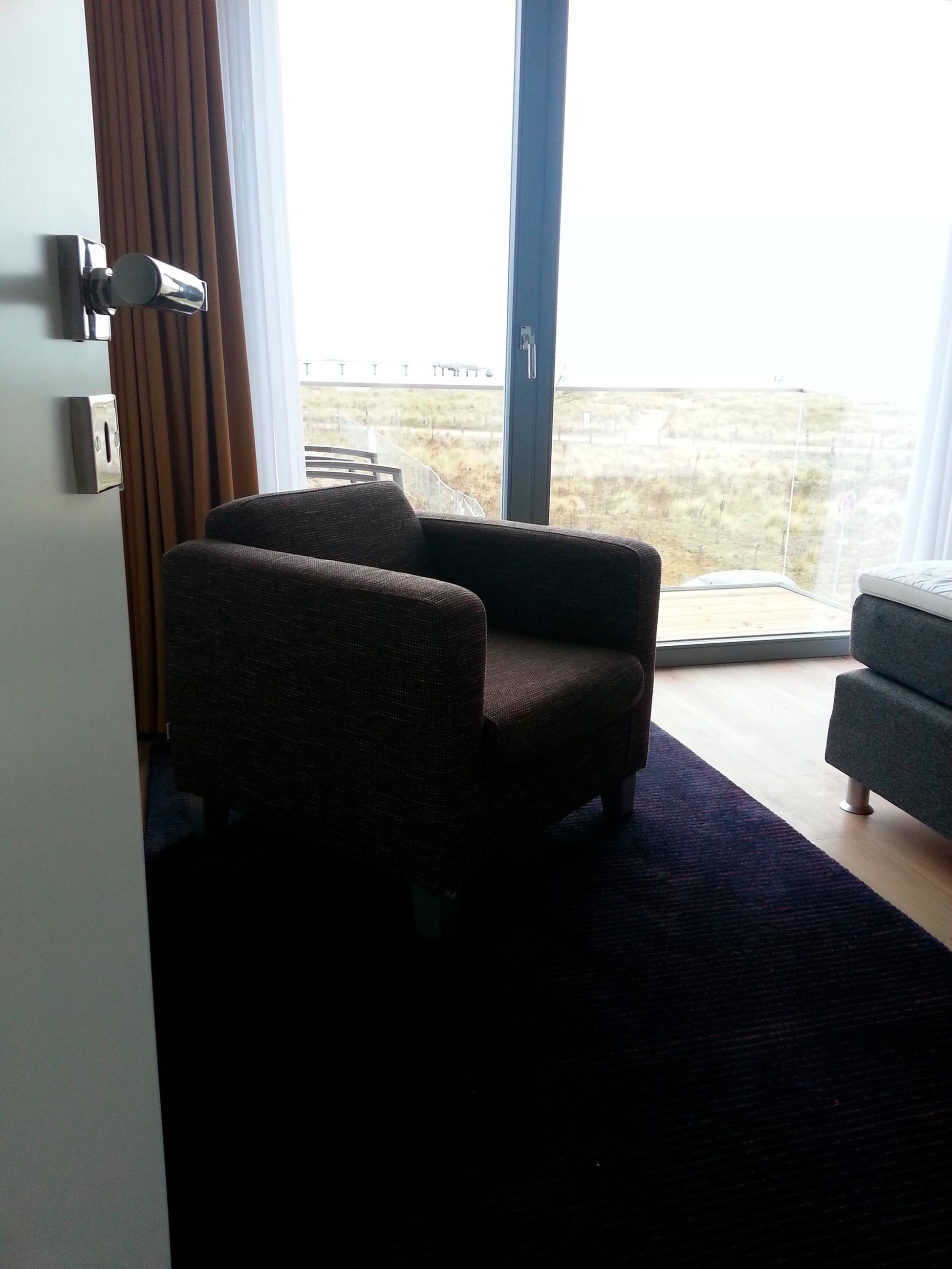 Beim Biss ins knackige Frühstücksbrötchen blickt man aufs Meer, wenn man von seiner Ferienlektüre aufschaut, glitzert das Wasser und wenn man abends auf dem Balkon steht, schweift der Blick weit über die Wellen. Das Haus ist modern eingerichtete, wobei die massiven Eichenplatten der Tische im Wohn-Esszimmer einen Hauch wohnlicher Rustikalität verströmen. Wenn man dann abends in die Flammen des Kaminofens blickt, verliert das Wetter an Bedeutung und wem es immer noch nicht warm genug ist, der kann sich in der Sauna aufheizen.