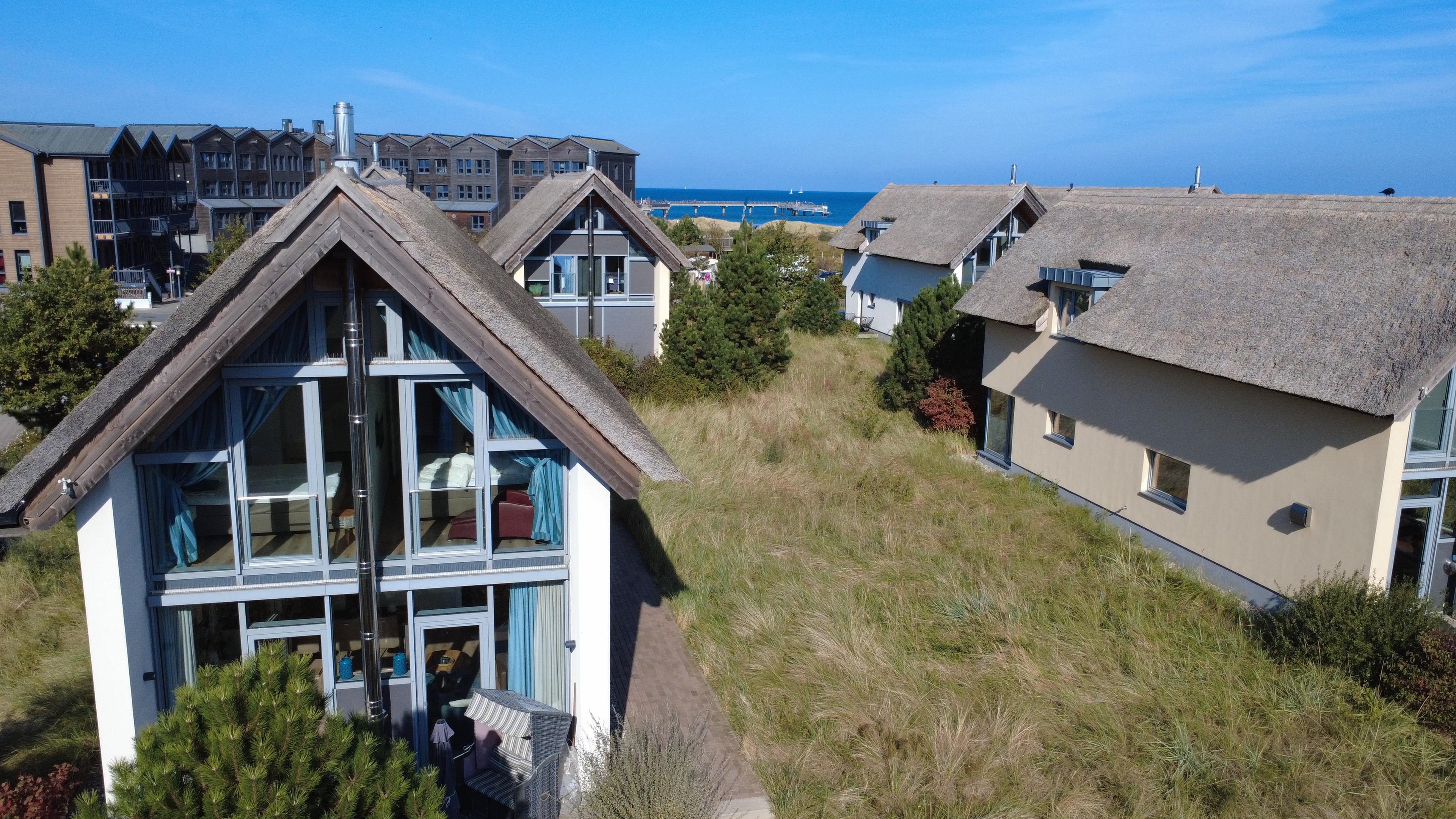 Zwischen Marina und Strand, auf der Rückseite der Strandpromenade, liegt das 136 m² große Reetdach-Ferienhaus - einer der schönsten Flecken Heiligenhafens. Hier finden bis zu 6 Personen Platz. Privater Parkplatz direkt am Haus.
