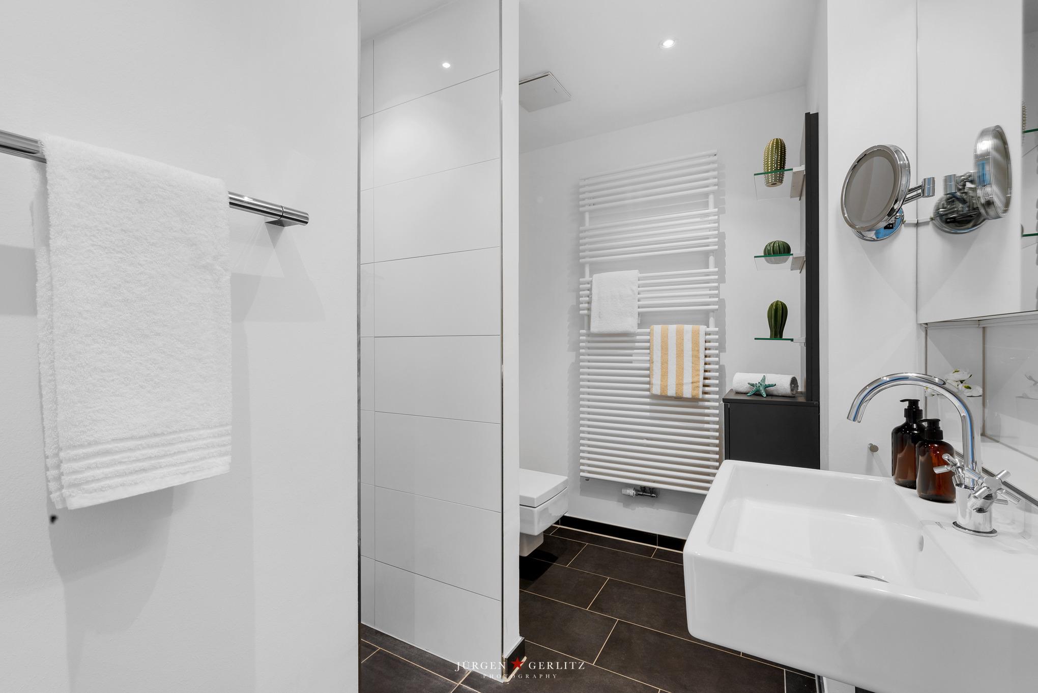 Die beiden Schlafzimmer sind jeweils mit Boxspring-Doppelbetten ausgestattet. Die Bettdecken Sets sind Allergiker geeignet, auch ein Kinderreisebett steht bereit. TV-Geräte gehören zum Standard.