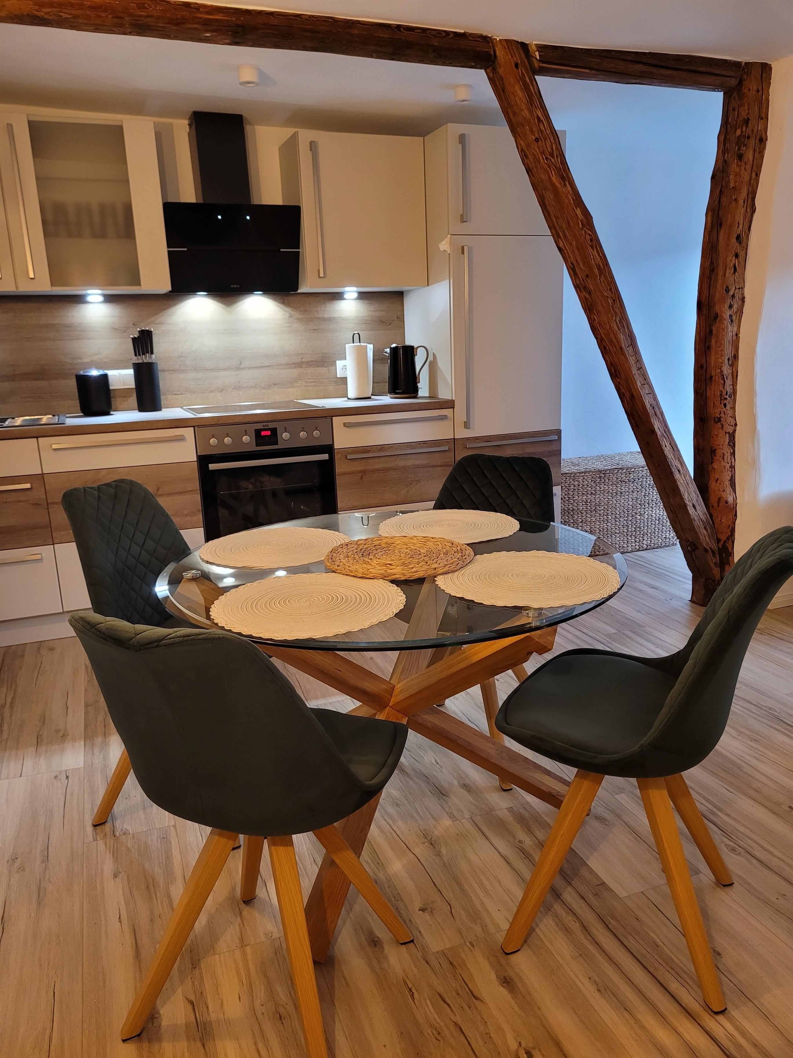 Die Sanierung der FeWo „Strandgut “ wurde im Juli 2023 abgeschlossen, also „brandneu“. In der Wohnung trifft der exklusive Skandi-Stil auf den gemütliche Boho-Stil, dabei verfügt die Wohnung über eine hochwertige Ausstattung. Die FeWo „Strangut“ besteht aus einem Wohnzimmer mit offener Küche, welche komplett ausgestattet ist. Diese verfügt über einen Geschirrspüler, Kühlschrank, Ceranherd, Backofen, Toaster, Kaffeemaschine und Wasserkocher. Des Weiteren befindet sich im Wohnzimmer ein qualitativ hochwertiges Sofa und der gemütliche Essbereich. Das Schlafzimmer ist mit einem komfortablen Boxspringbett in Queensize-Größe plus Topper für einen erholsamen Schlaf eingerichtet. Die FeWo "Strandgut" besitzt ein einzigartiges innenliegendes Duschbad mit WC und Föhn. Das absolute Highlight der FeWo "Strandgut" ist aber der große Balkon mit Süd-West-Ausrichtung, hier kann man schöne sonnige Tage und Abende genießen, auch der Blick in den geheimen Garten lädt zum Entspannen und Erholen ein. Zur weiteren Ausstattung gehören: Flachbild-Fernseher, Radio-anlage, Wäscheständer. Ein Waschtrockner, Bügeleisen und Bügelbrett sind auch im Hause vorhanden. PKW-Stellplätze befinden sich 200 m weiter direkt am Binnensee. Ein wunderschöner Innenhofgarten mit der alten Fasswerkstatt #LostPlace und einem Grillplatz lädt zum Verweilen und grillen ein.