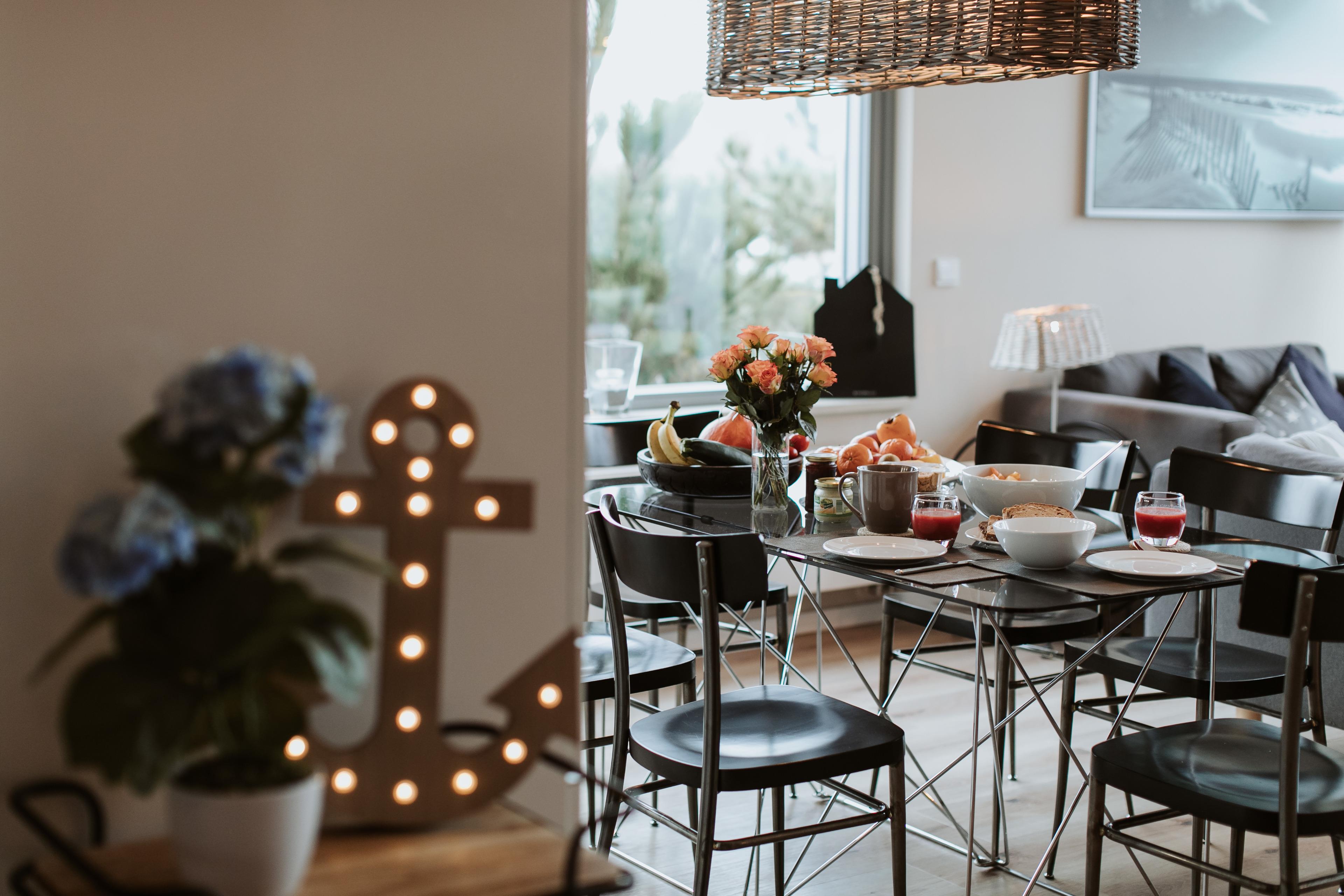 Den Binnensee vor dem Haus, die Marina dahinter und der Strand 50 m entfernt - dort liegt das 136 m² große Ferienhaus mit Platz für 6 Personen und Ihren Hund auf zwei Etagen. Ein privater Parkplatz befindet sich direkt am Haus.