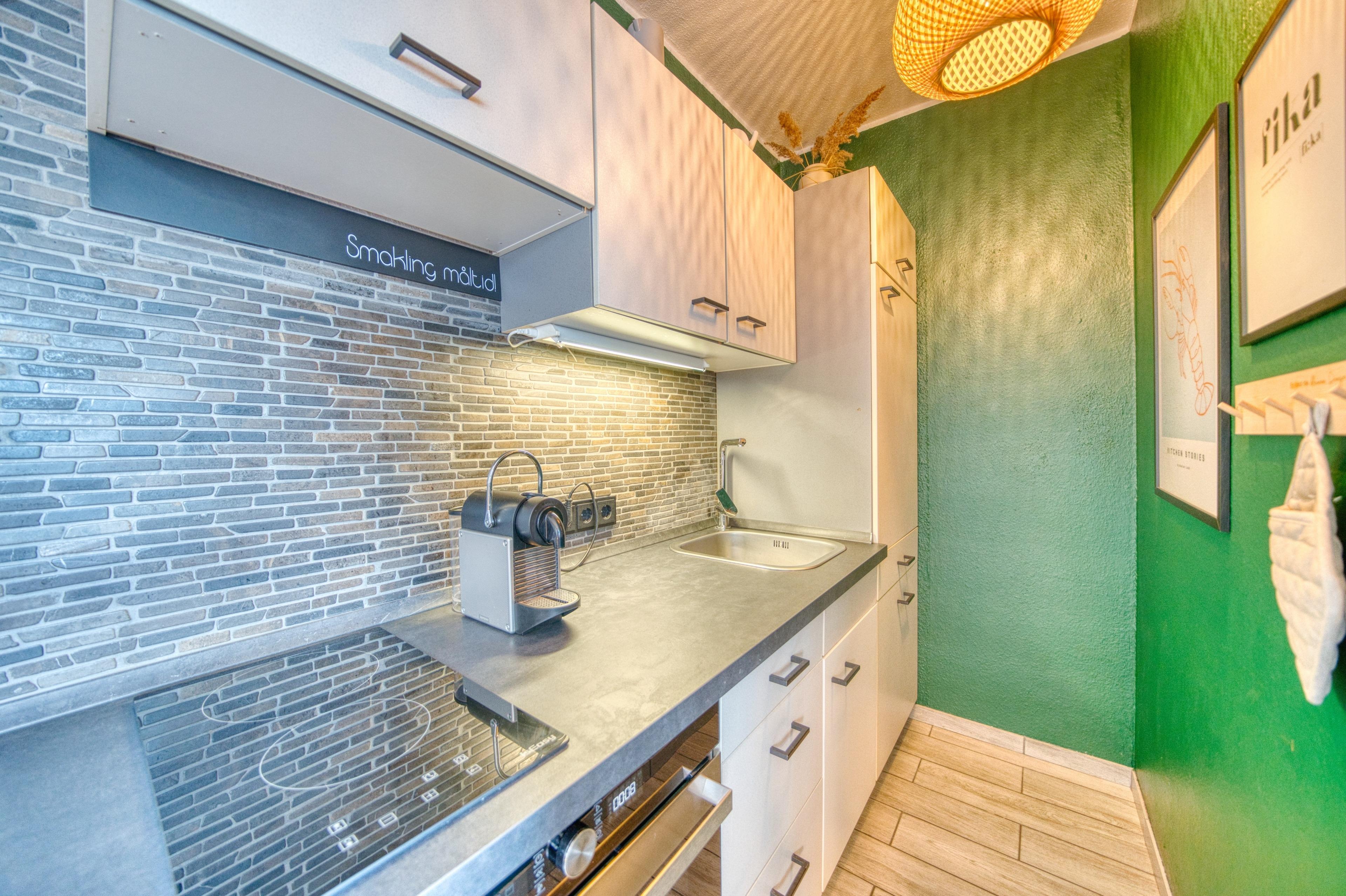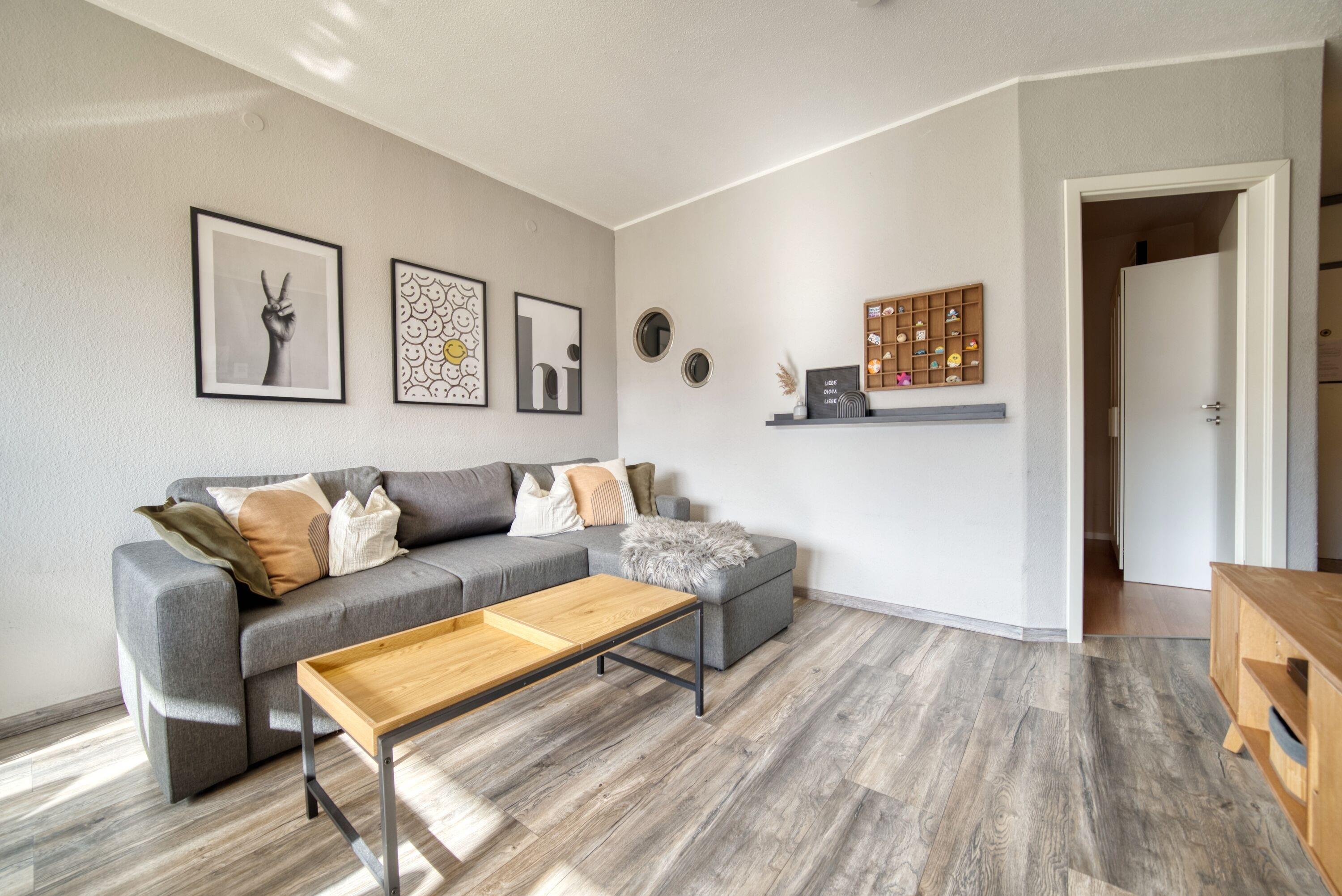 Die Wohnung verfügt über ein Elternschlafzimmer, ein Kinderzimmer mit Etagenbett für zwei Kinder, ein Wohn-Schlafbereich mit Schlafsofa, eine voll ausgestattete Küche mit Backofen, Ceran-Kochfeld, Mikrowelle, Kaffeemaschine, Wasserkocher und Toaster sowie ein modernes Bad mit Dusche und Handtuchtrockner. WLAN ist inklusive.