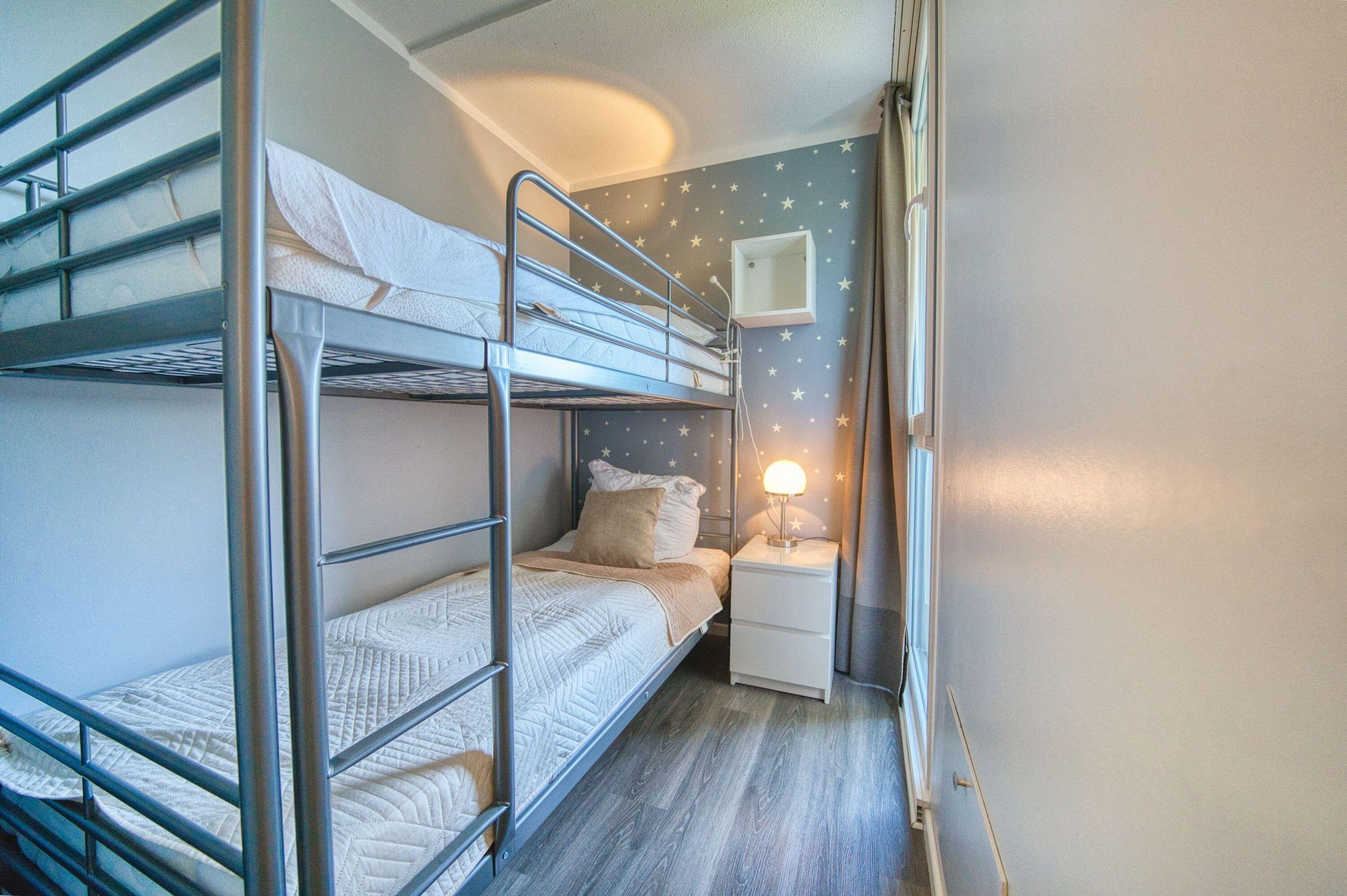 Genießen Sie Ihren unbeschwerten Urlaub in dieser charmanten Ferienwohnung im Haus F des Ferienparks Heiligenhafen. Die 9. Etage bietet einen traumhaften Blick auf die Ostsee, die Fehmarnsundbrücke und den Binnensee mit Stadt und Yachthafen. Der Balkon zur Ostseite lädt zu entspannten Momenten in der Sonne ein. Wohn-/Esszimmer mit Sitzbereich, Smart-TV und Radio, Schlafbereich mit Doppelbett, Kinderzimmer mit Etagenbett (bis 90?kg). Balkon mit Ostseeblick. Küche voll ausgestattet mit Kühlschrank, 4-Plattenherd und Geschirr. Bad mit Dusche/WC. Kostenloses WLAN. Ca. 300?m zum Strand, Aktiv-Hus, Kinderspielwelt, Läden und Restaurants in der Nähe. Fahrradräume vorhanden. Max. 4 Personen, Nichtraucher, keine Haustiere.