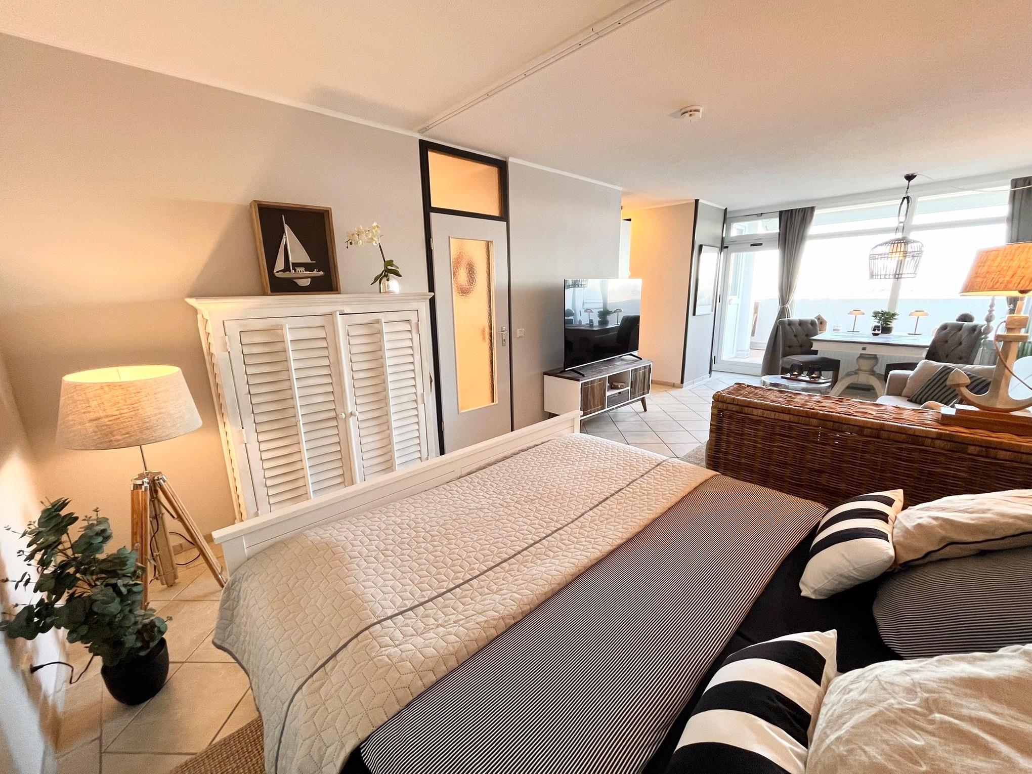Die Wohnung 0F1202 liegt im Haus F Ferienpark, in der 12. Etage, und verfügt über den größten Balkon im gesamten Ferienpark – ideal für Frühstücke in der Morgensonne oder entspannte Abende mit Blick auf die Landschaft und spektakuläre Sonnenaufgänge. Wohnbereich mit Couch, 65-Zoll Smart-TV und Rivièra Maison Möbeln. Schlafbereich mit Doppelbett, zusätzliches Einzelbett. Offene Küchenzeile mit Ceranfeld, Mikrowellen-Backofen-Kombigerät. Bad mit Duschkabine und Handtuchtrockner. Großzügiger Balkon mit herrlicher Aussicht. Kostenloses WLAN. Nichtraucher, keine Haustiere, Fahrstuhl, Fahrradräume, ca. 300?m zum Strand, kostenfreier Parkplatz. Ideal für bis zu 3 Personen, mit Schwimmbad, Sauna, Wellness und Kinderspielwelt im Ferienpark.