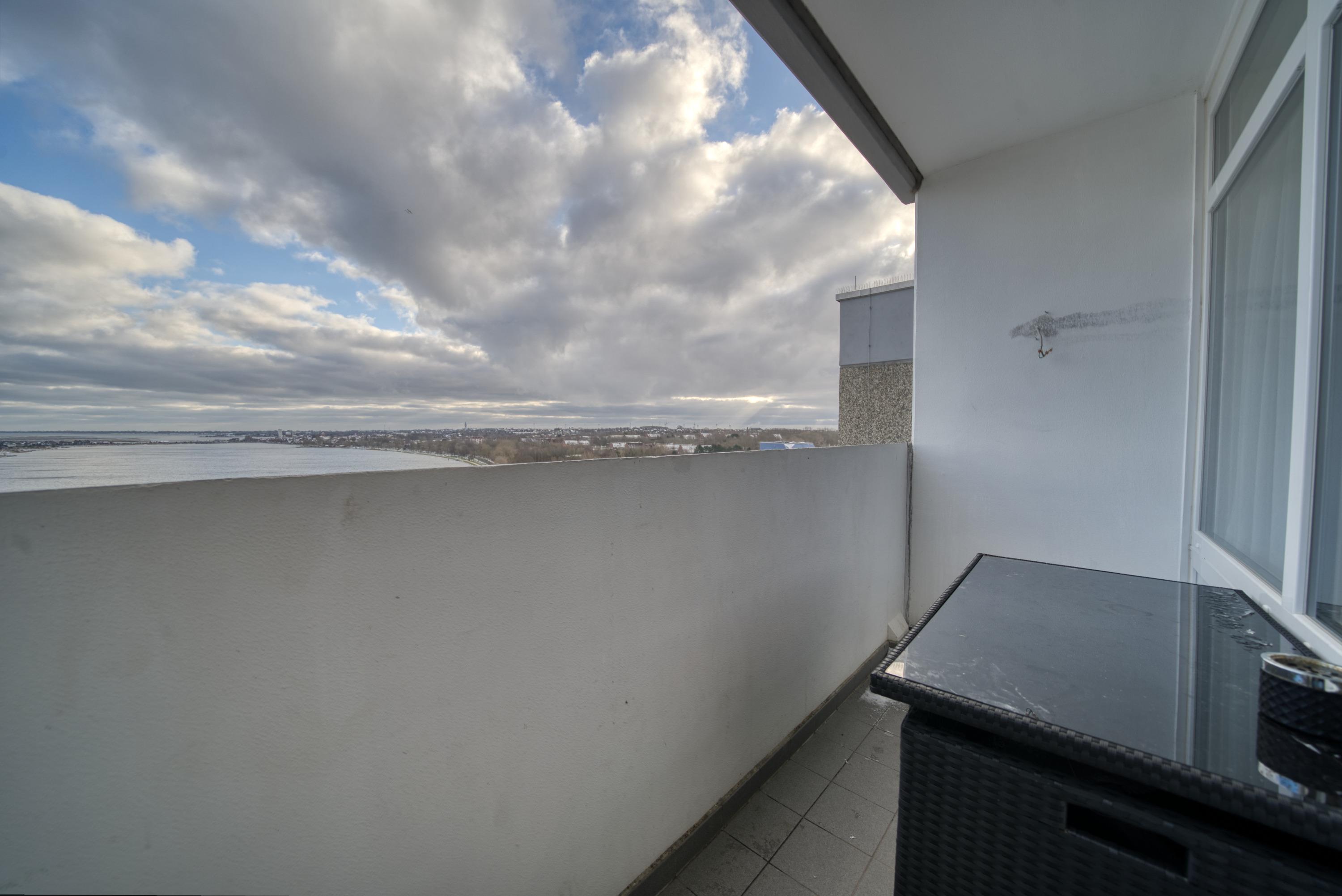 Die Wohnung liegt im Haus F Ferienpark, in der 14. Etage, mit Balkon, der einen traumhaften Ausblick über den Binnensee, den Yachthafen und die Ostsee bietet.
