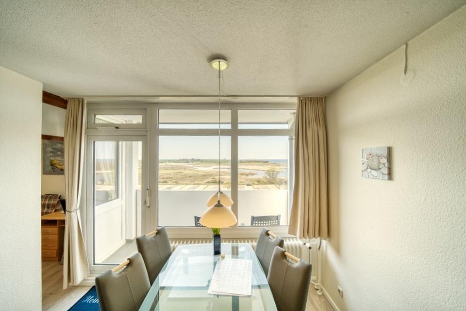 Esstisch im Wohnbereich mit Blick auf die Ostsee