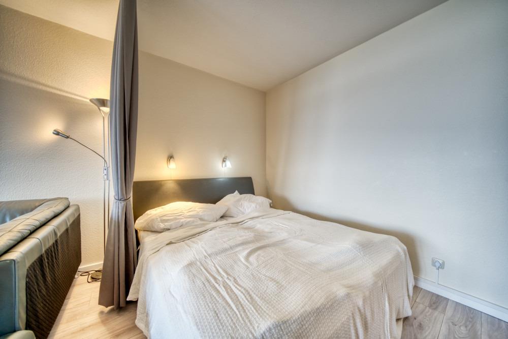 Wohn-/Schlafbereich mit Doppelbett und Flachbild-TV