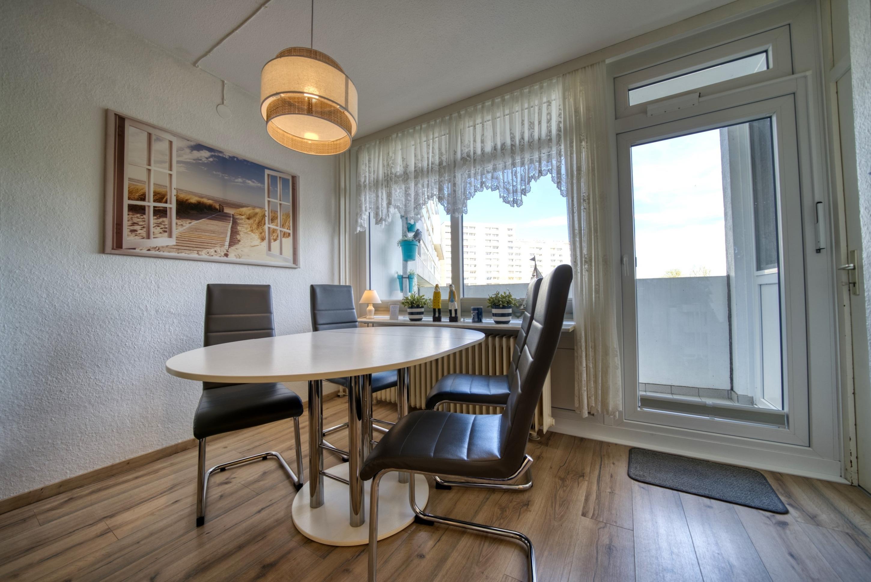 Die Wohnung liegt im Haus K Ferienpark, in der 1. Etage, mit Balkon zum Innenhof, der einen schönen Blick auf die Grünanlagen bietet.