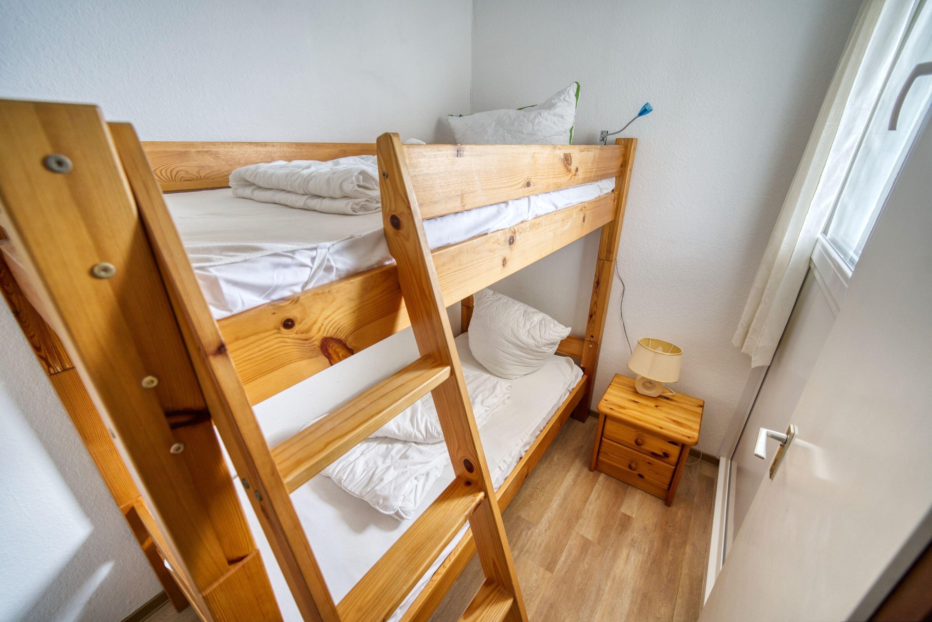 Die Wohnung verfügt über Wohn-Schlafbereich mit zwei Einzelbetten, separates Kinderzimmer mit Etagenbett, Wohnbereich mit Ecksofa, Smart-TV und Esstisch, Laminatboden, voll ausgestattete Küche (Kühlschrank, 4-Plattenherd, Mikrowelle, Kaffeemaschine, Toaster, Wasserkocher) sowie Duschbad mit WC und Handtuchtrockner. Kostenfreies WLAN, Nichtraucher, keine Haustiere, Fahrstuhl, Fahrradräume, ca. 300?m bis zum Strand, kostenfreier Parkplatz.