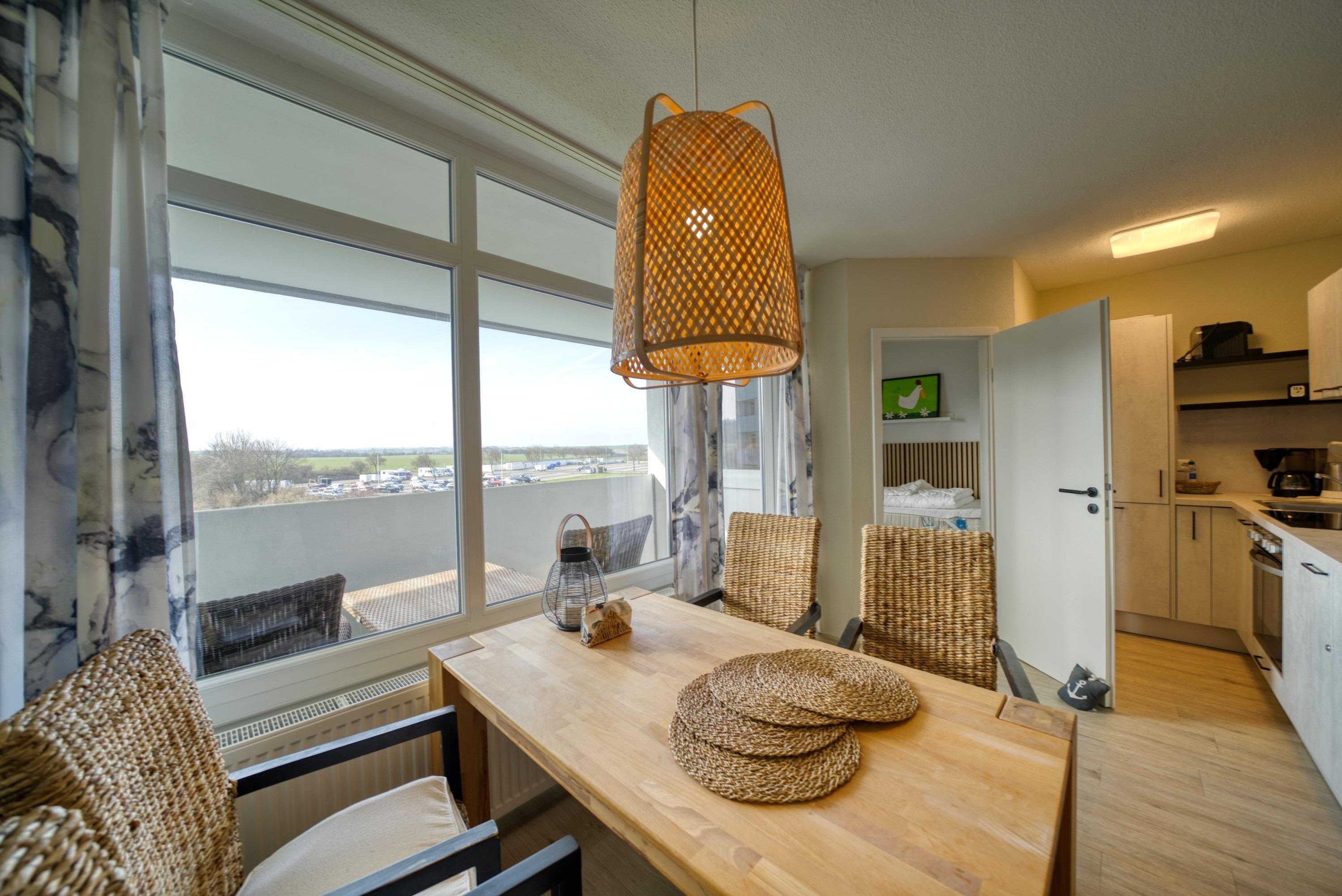 Die 45?m² Wohnung verfügt über Wohn-Esszimmer mit Sofa, Esstisch und Flachbild-TV, sonnigen Süd-Balkon, Elternschlafzimmer mit Doppelbett und TV, separates Schlafzimmer mit Einzelbett und TV, moderne Küche mit Ceranherd, Backofen, Mikrowelle, Kühlschrank/Gefrierfach, Geschirrspüler, Wasserkocher und Toaster sowie Bad mit bodengleicher Dusche und Handtuchtrockner. Bonus: WLAN. Nichtraucher, keine Haustiere, Fahrstuhl, Fahrradräume, kostenfreier Parkplatz. Strand ca. 300?m entfernt. Der Ferienpark bietet Aktiv-Hus, Läden, Restaurants und Kinderspielwelt – perfekt für einen erholsamen Ostseeurlaub.