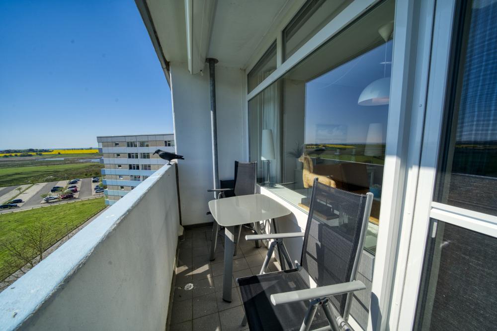 Die Wohnung liegt im Haus L Ferienpark, in der 8. Etage, mit Balkon zur Südseite, der viel Sonne und einen schönen Blick auf die Salzwiesen sowie die Ostsee bietet.