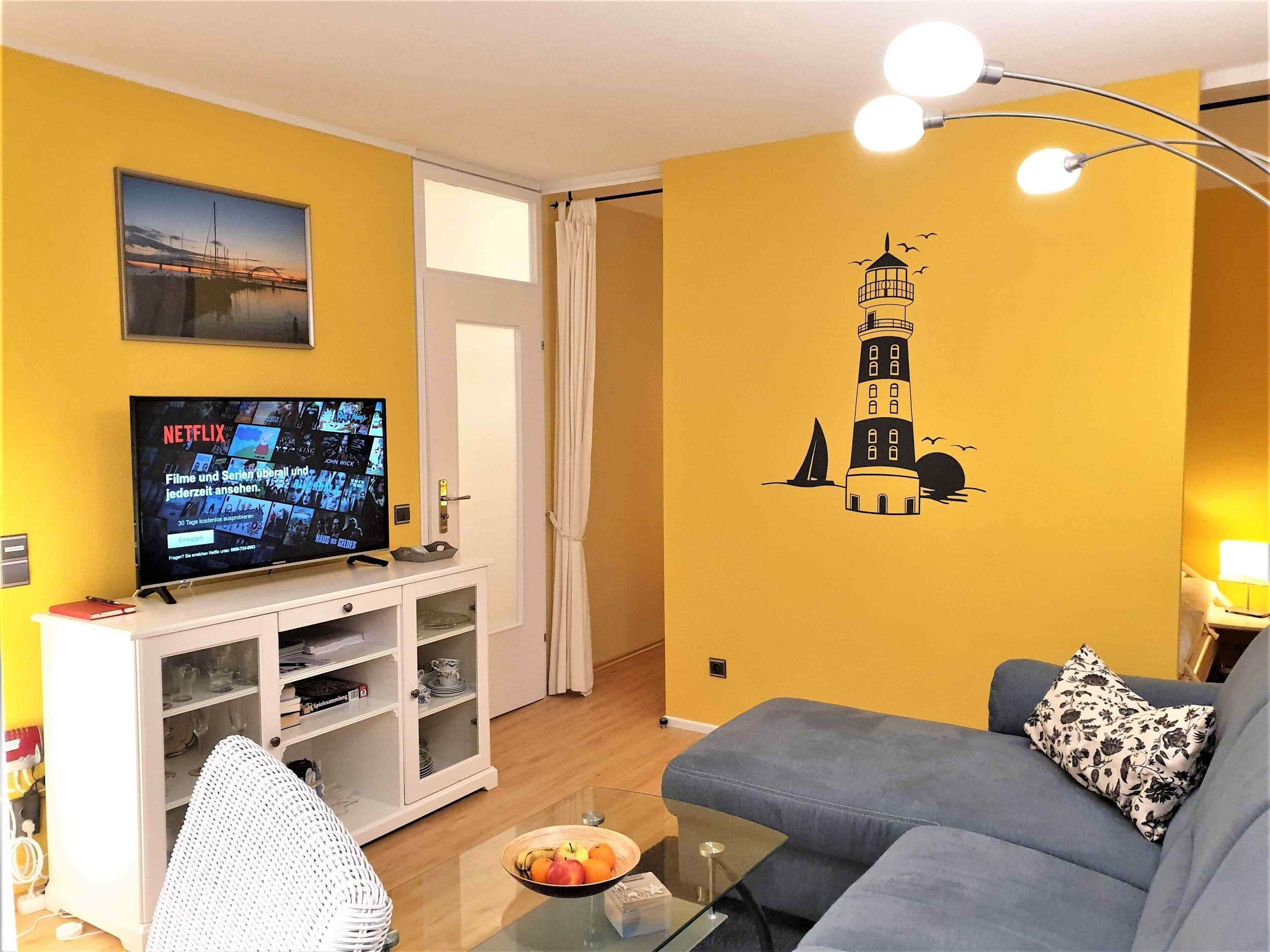 Wohnfläche 45?m²: Wohn-Esszimmer mit Flat-TV, zwei Schlafzimmer mit TV, Kinderzimmer mit Etagenbett (2 Erwachsene geeignet), Küche mit Spülmaschine, Backofen/Mikrowelle, Toaster, Wasserkocher, Pad- und Kaffeemaschine. Modernes Bad mit Dusche/WC, Balkon mit Möbeln. WLAN, Netflix, PC-LAN, USB-Ladestation, Kinderhochstuhl und Kofferrolli vorhanden. Nichtraucher, haustierfrei, max. 4 Personen, Fahrstuhl, kostenfreier Parkplatz. Bettwäsche/Handtücher im Büro abzuholen. Ideale Lage, Strand ca. 300?m, Aktiv-Hus und Läden in der Nähe.