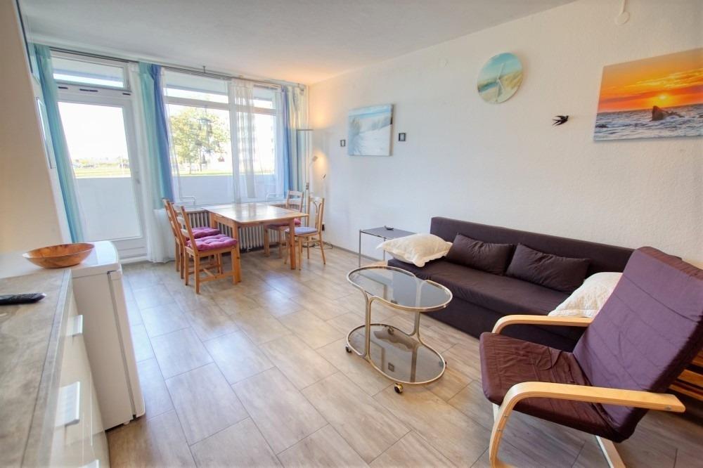 Wohn-Esszimmer, Elternschlafbereich mit Doppelbett, separates Kinderzimmer mit Hochbett. Komplett ausgestattete Küche mit Mikrowelle, Kühlschrank, 4-Plattenherd und Gefrierschrank (80?L). Bad mit Dusche und WC. TV und Radio im Wohnzimmer. Kein WLAN. Nichtraucherwohnung, keine Haustiere. Maximal 4 Personen. Kostenfreier PKW-Stellplatz, Fahrstuhl vorhanden. Strand ca. 300?m entfernt. Der Ferienpark bietet Läden, das Aktiv-Hus mit Schwimmbad, Sauna, Wellness und Kinderspielwelt – ideal für abwechslungsreiche Urlaubstage.