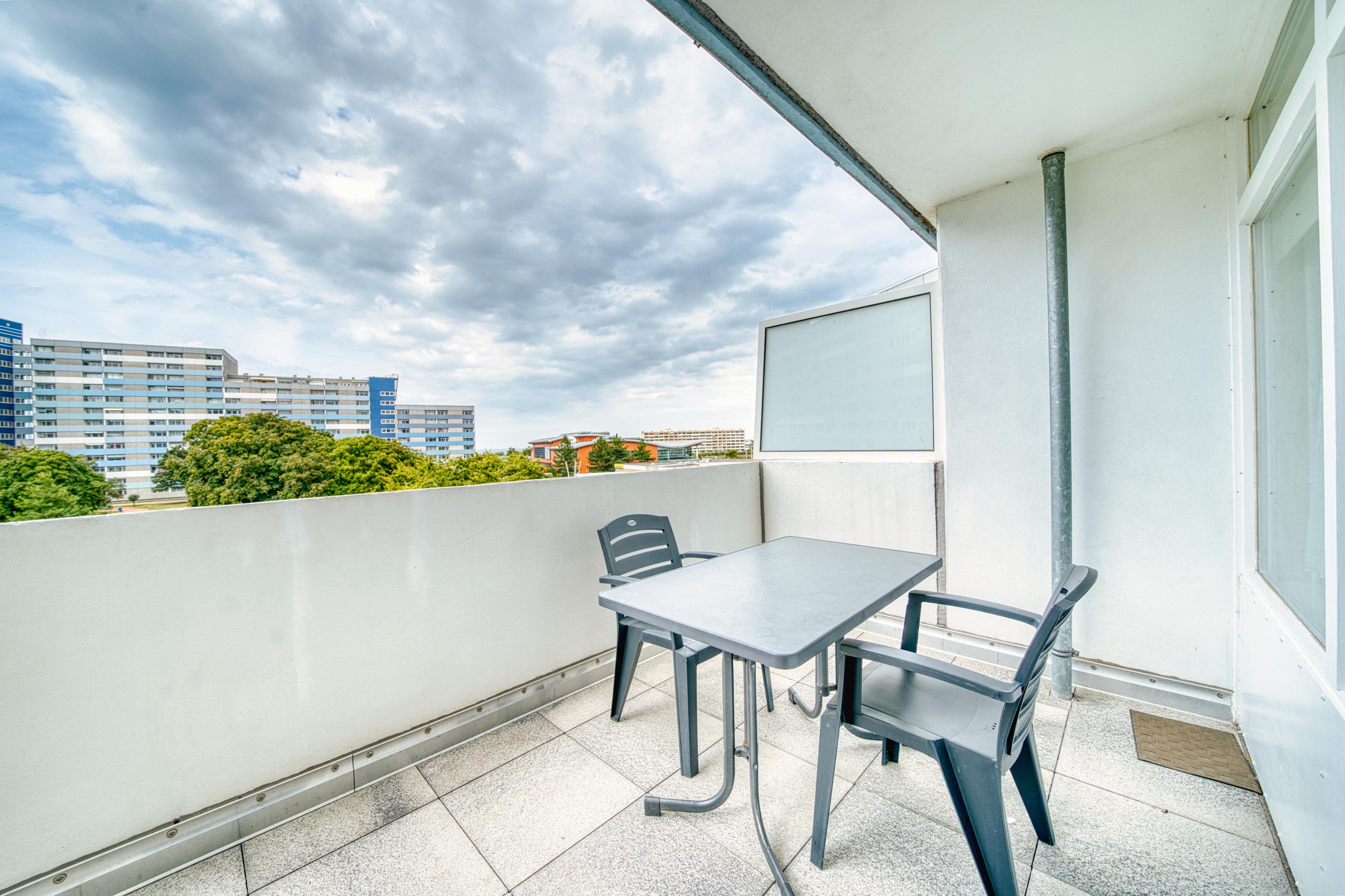 Die Wohnung liegt im Haus O im Ferienpark in der 3. Etage, mit großem Balkon zum Innenhof, der einen schönen Blick auf die Grünanlagen bietet.