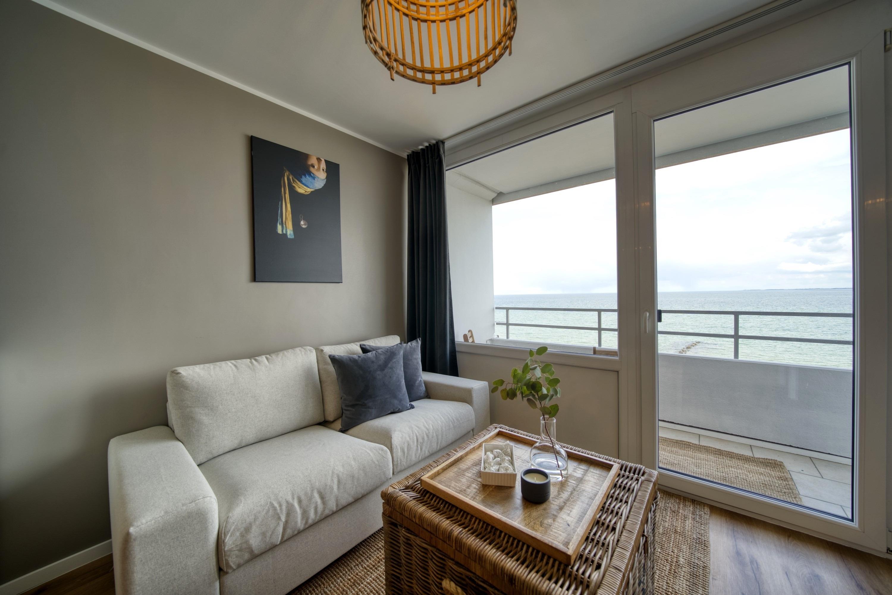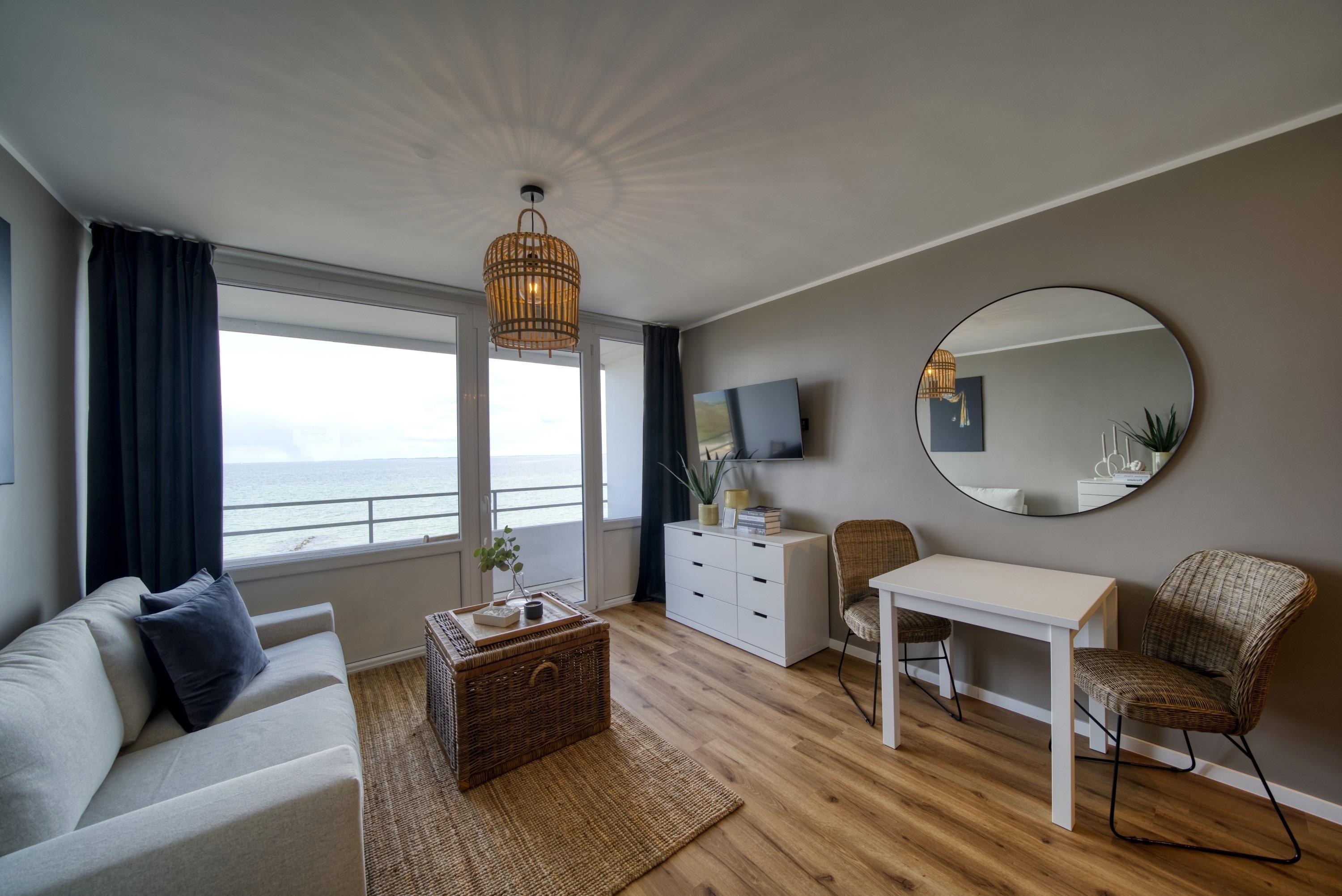 Besonders reizvoll ist der Balkon mit wunderschönem Meerblick. Genieße die frische Luft und den Blick auf die Ostsee. Hier lässt es sich herrlich entspannen und den Urlaub in vollen Zügen genießen.