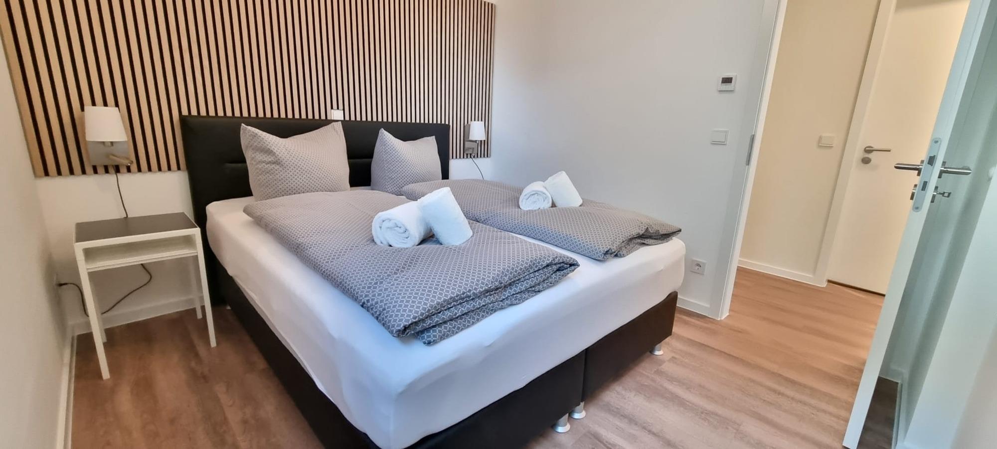 Das Schlafzimmer ist mit hochwertigen Boxspringbetten (160x200 cm) ausgestattet, die für einen erholsamen Schlaf sorgen. Das Badezimmer besticht durch eine moderne Walk-in-Dusche, eine Handtuchheizung, einen Kosmetikspiegel sowie einen Fön, wodurch Sie einen komfortablen Start in den Urlaubstag genießen können.