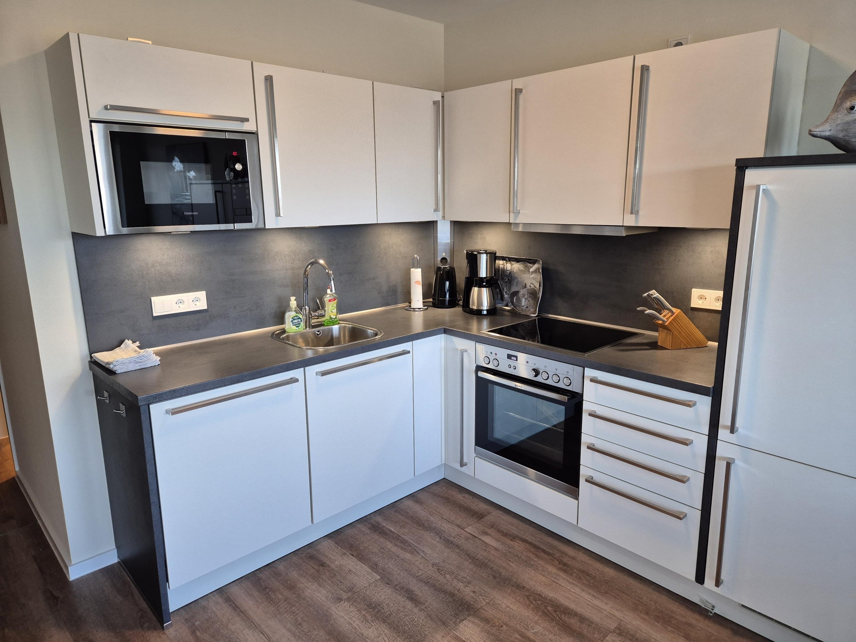 Die Ferienwohnung bietet Ihnen modernen Komfort und stilvolles Ambiente auf großzügiger Fläche. Der große Wohn- und Essbereich lädt zum Verweilen ein und ist mit einer offenen, voll ausgestatteten Küche ausgestattet. Hier finden Sie alles, was Sie für die Zubereitung von Mahlzeiten benötigen, von modernen Küchengeräten bis zu hochwertigem Geschirr. Das Wohnzimmer und das separate Schlafzimmer sind jeweils mit Flatscreen-TVs ausgestattet, sodass Sie es sich auch an regnerischen Tagen gemütlich machen können.