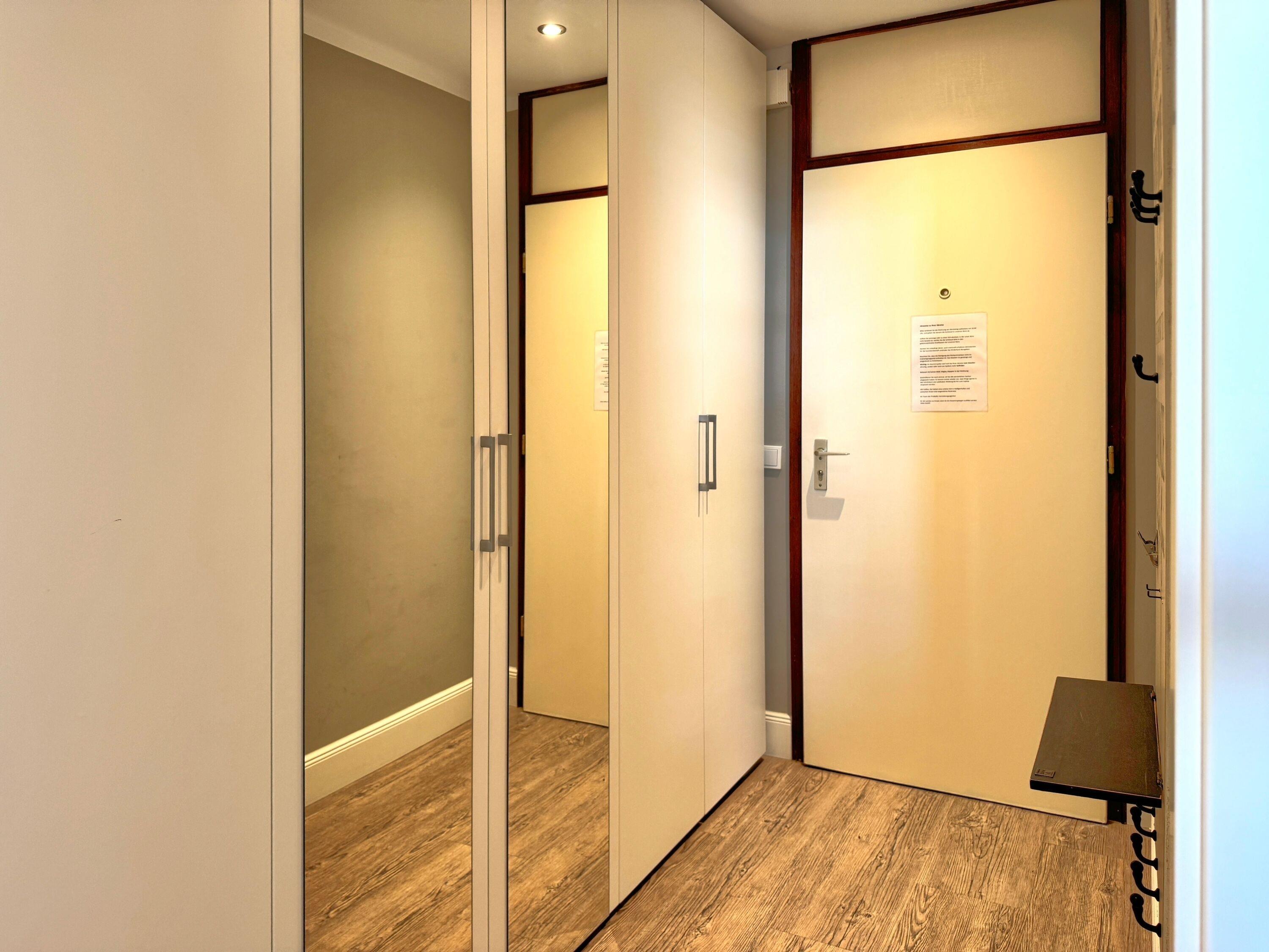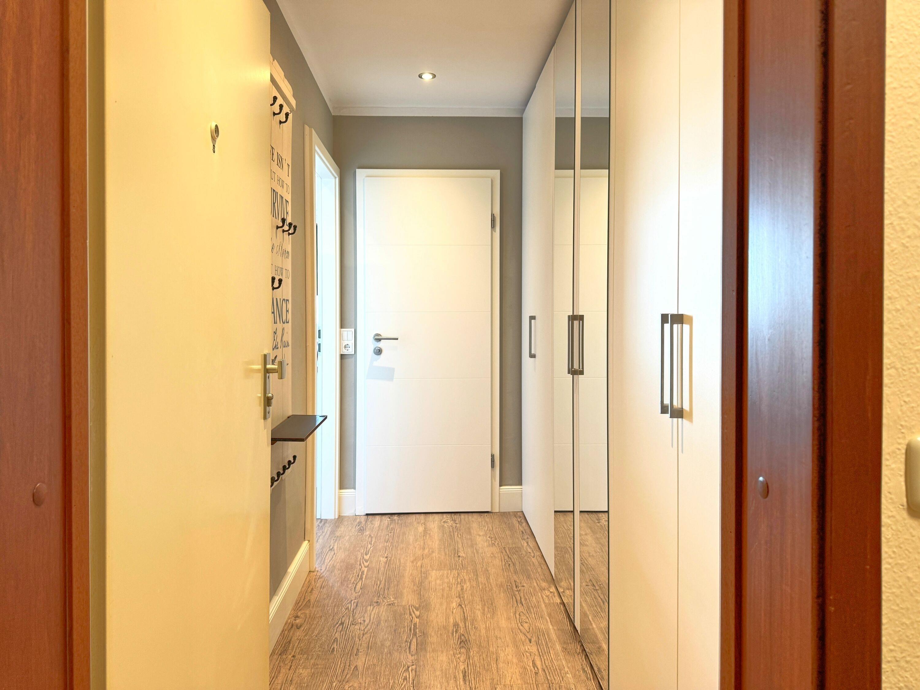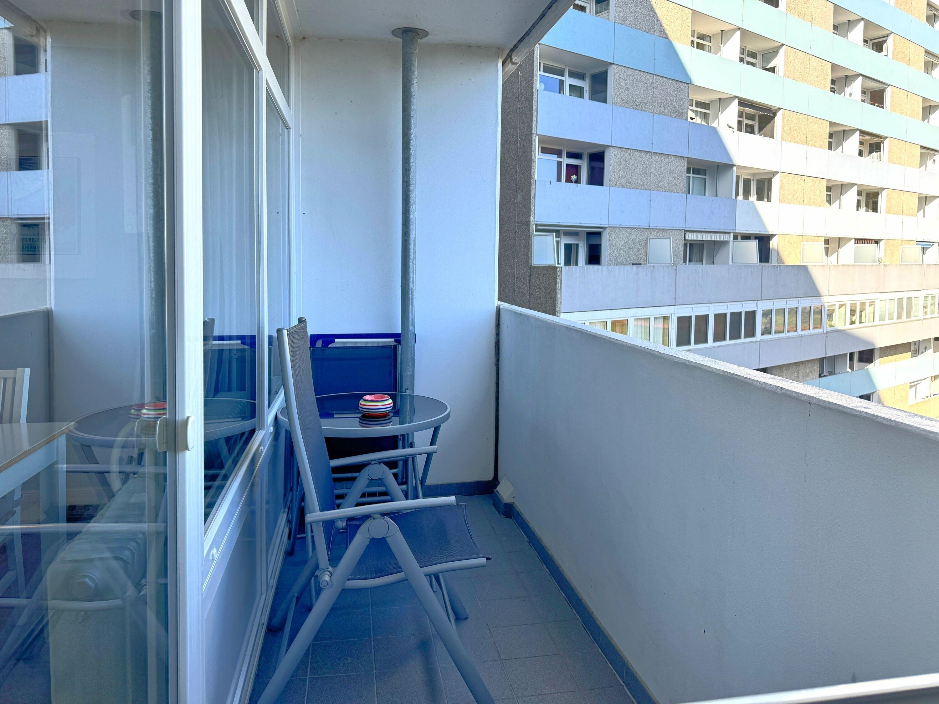 Die Wohnung befindet sich in der 3. Etage und ist bequem über einen Aufzug erreichbar. Vom möblierten Balkon aus genießen Sie den Blick in den begrünten Innenhof des Ferienparks sowie in Richtung Binnensee – ein ruhiger Ort, um den Tag mit einer Tasse Kaffee zu beginnen oder ihn entspannt ausklingen zu lassen.