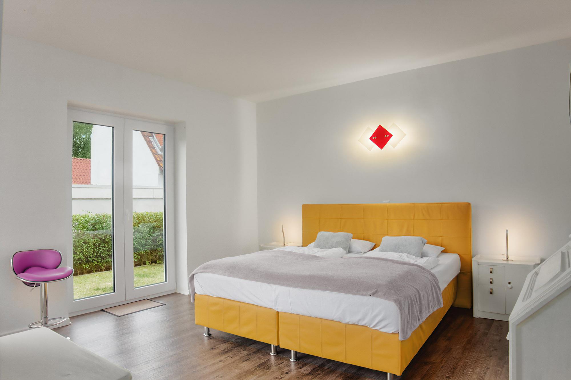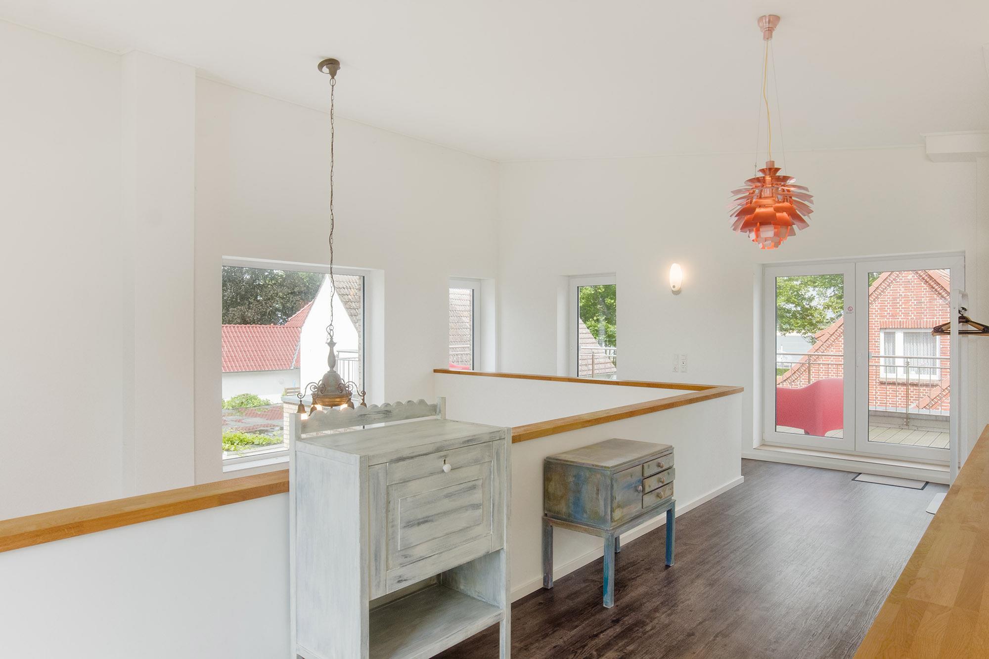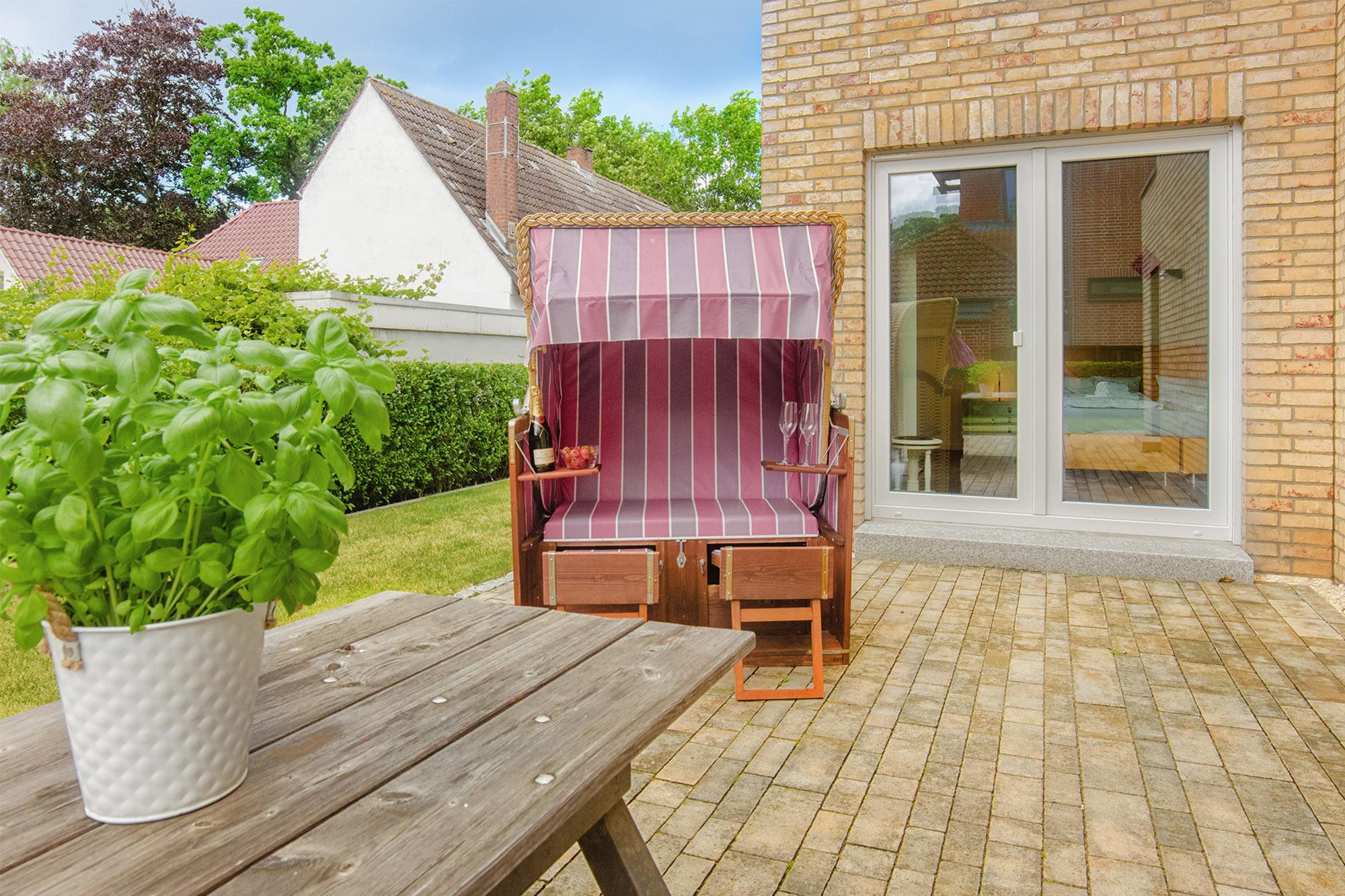 Das neue und topmoderne Ferienhaus "Kehrwieder No.5" bietet sehr viel Platz auf ca. 158m² Wohnfläche und ist besonders für Familien, Allergiker oder Zweisamkeit-Suchende interessant. Der Wohnbereich strahlt die gehobene Atmosphäre zur Entspannung mit Relax-Ledercouchs und Fernsehsessel geradezu aus. Dabei lässt sich Gemütlichkeit bei HD-SmartTV oder WLAN-Nutzung leben. Kulinarisch steht Ihnen im ca. 60 m² großen und offenen Wohnküchen-Essbereich, mit offener Decke zum Obergeschoss, nichts im Wege. Dafür sorgt die hochwertige und voll ausgestattete Küche, die geradezu zum Kochen einlädt. Der große Esstisch mit zwei Sitzbänken und zwei Stühlen für mindestens 6 Personen schafft einen Treffpunkt für Ihren Aufenthalt. Hier lässt sich der Urlaub beim Essen bestens planen. Für die nächtliche Erholung stehen zwei Schlafzimmer im Erdgeschoss, sowie ein Schlafzimmer im Obergeschoss zur Verfügung. Die Schlafzimmer sind sämtlich mit Doppelboxspringbetten für den entsprechenden Liegekomfort und TV zum relaxten Einschlummern ausgestattet. Allergiker geeignete Bettwäsche und Handtücher sind gg. Gebühr möglich. Das große Schlafzimmer verfügt über einen begehbaren Kleiderschrank, sowie direkten Garten- und Badezimmerzugang. Ebenso erreichen Sie das Badezimmer vom gegenüberliegenden Schlaf-/Kinderzimmer. Die Schlafzimmer im EG sind mit Schiebetüren versehen und nicht abschließbar! Ein zusätzliches Gäste-WC im Erdgeschoss sorgt auch hier für die nötige Ungestörtheit. Über die Diele gelangen Sie ins Obergeschoss, wo sich weitere High-Lights des Hauses befinden. Über die fantastische Galerie im Obergeschoss erreichen sie die ca. 40 m² Nordterrasse mit Blick auf den Binnensee oder die ca. 20 m² Südterrasse mit Blick zum Kurpark oder zur Stadtkirche. Das dritte Schlafzimmer, sowie ein weiteres Duschbad mit Doppelwaschbecken und WC schaffen hier einen Rückzug für Wellness und Entspannung. Verdunklung ist in allen Zimmern über elektrische Rollläden möglich. Ein Baby-Reisebett und ein Hochstuhl können optional dazu gebucht werden. Vom Wohnbereich oder Schlafzimmer im Erdgeschoss geht es hinaus in den großzügigen Garten (ca. 350 m²) mit einer ca. 100 m² großen und möblierten Gartenterrasse in Südwest-Lage. Hier genießen Sie die Sonne in den zwei Liege-Strandkörben und relaxen nahezu perfekt. Auf abendliches Grillen müssen Sie ebenfalls nicht verzichten! Auf den Dachterrassen stehen Gartensessel zur weiteren Verfügung. Hier verleben Sie den Sonnenuntergang oder Abend bei einem herrlichen Glas Wein oder kühlem Getränk.