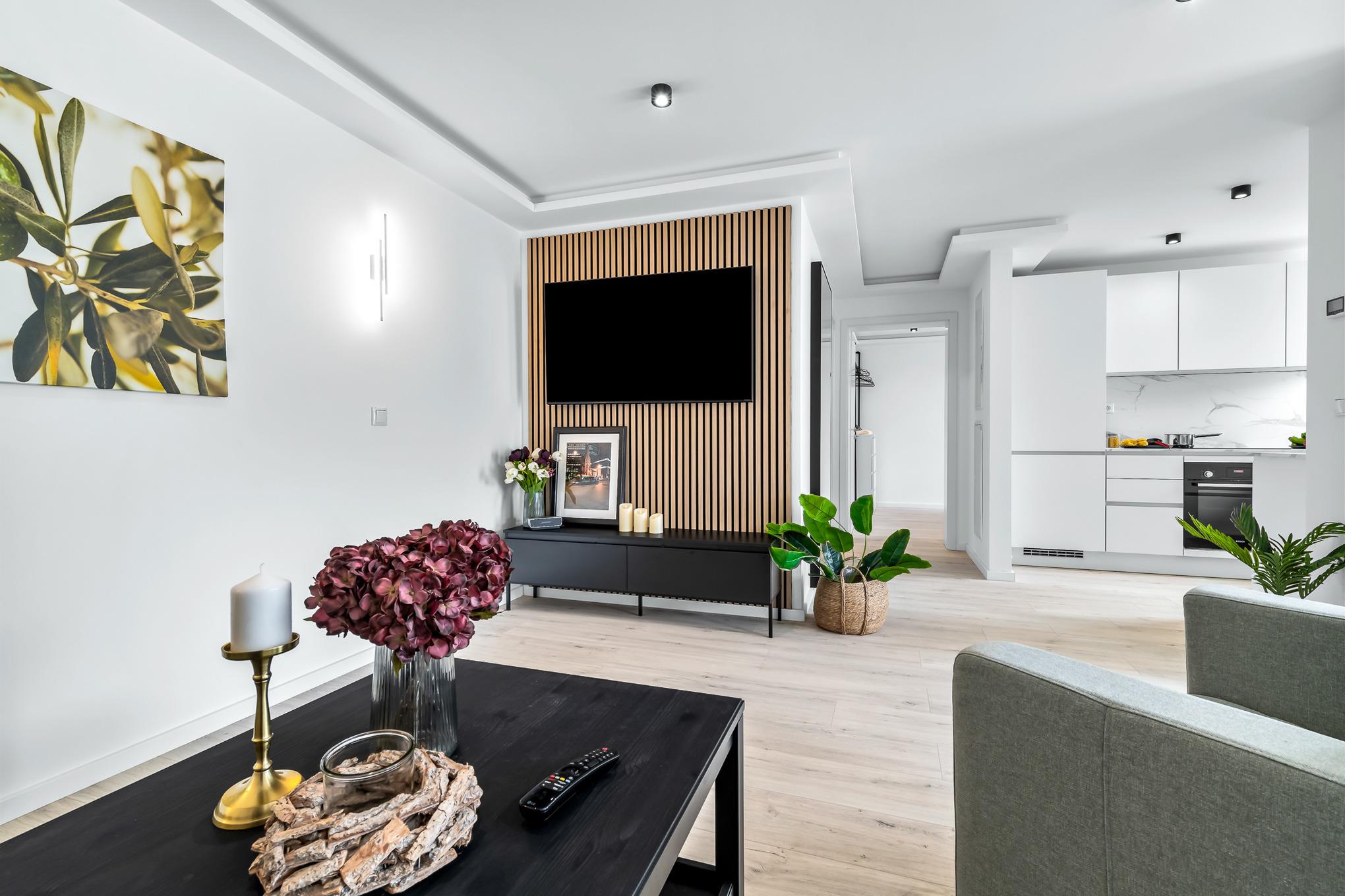 Die offene Küche wurde nahe dem Wohnbereich integriert. Modern und durchdacht gestaltet, bietet Ihnen die Einbauküche mit Induktionsherd alle Annehmlichkeiten für eine sorgenfreie Selbstversorgung. Eine Nespresso-Kapselmaschine steht zudem zur regulären Filterkaffeemaschine zur Verfügung.