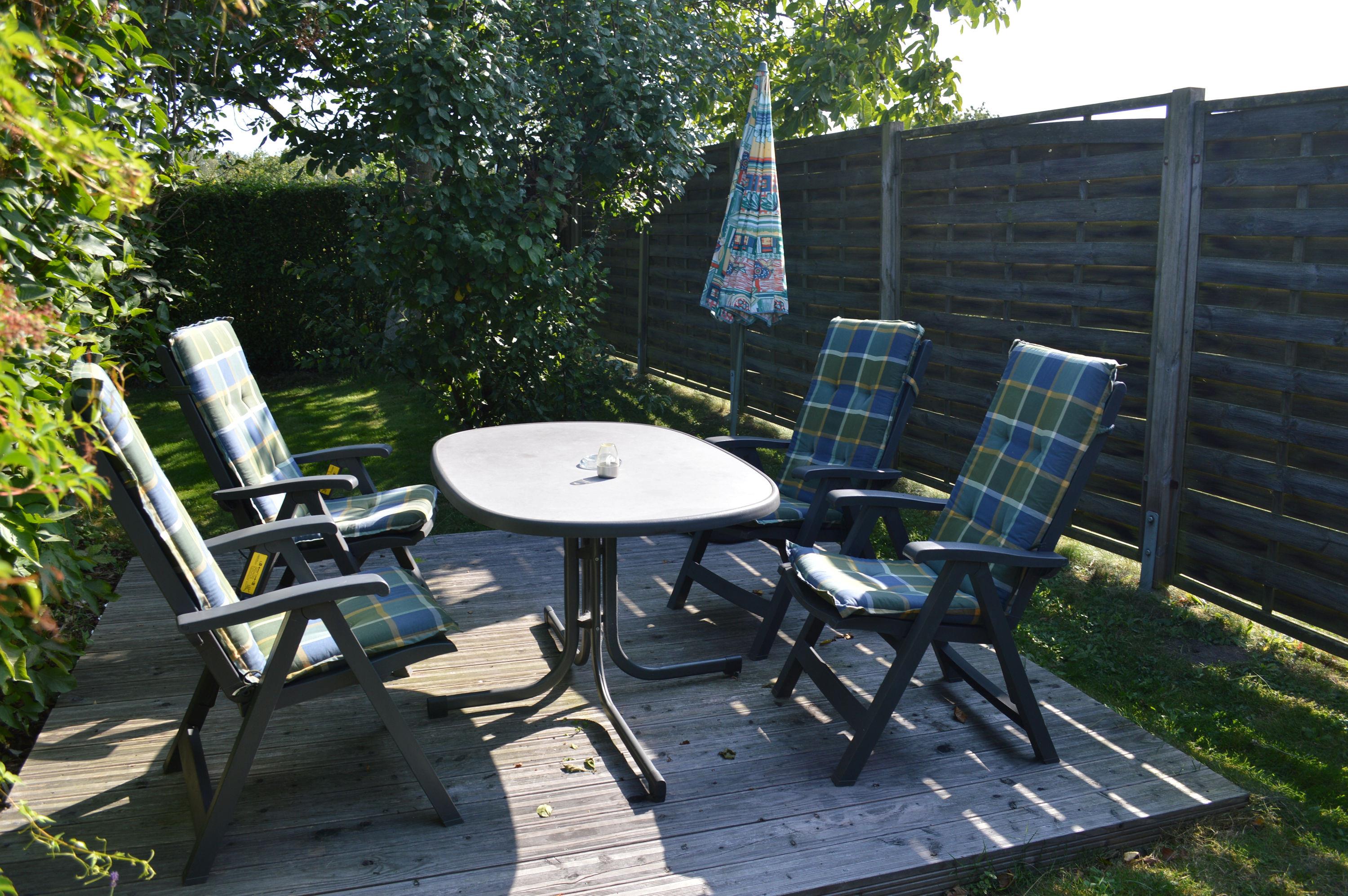 Im Garten mit Schaukel und Sandkasten liegt die zur Wohnung gehörende Terrasse. Diese Wohnung eignet sich besonders für Familie mit Kindern oder für getrennt schlafende Erwachsene. Ihren Hund dürfen Sie gerne mitbringen, in 150 Meter Luftlinie finden Sie einen bewaldeten Fußweg am Wasser, der Sie in ca. 5 Minuten zum Hafen und ca. 10 Minuten in die Innenstadt führt.