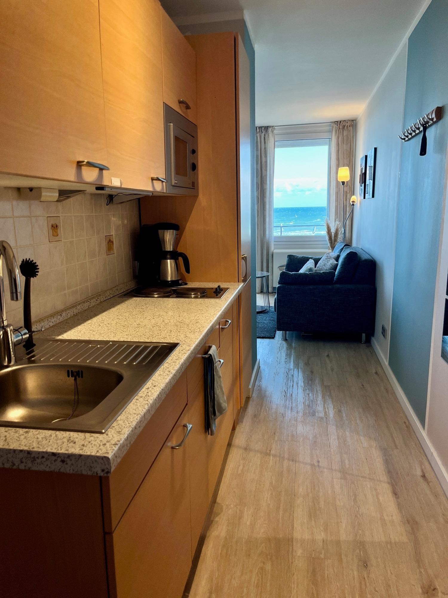 Die Küchenzeile ist praktisch ausgestattet und bietet alles, was Sie für die Selbstversorgung im Urlaub benötigen. Eine Mikrowelle, eine Kaffeemaschine sowie weitere grundlegende Küchenausstattung ermöglichen Ihnen einen entspannten Start in den Tag oder kleine Mahlzeiten zwischendurch.