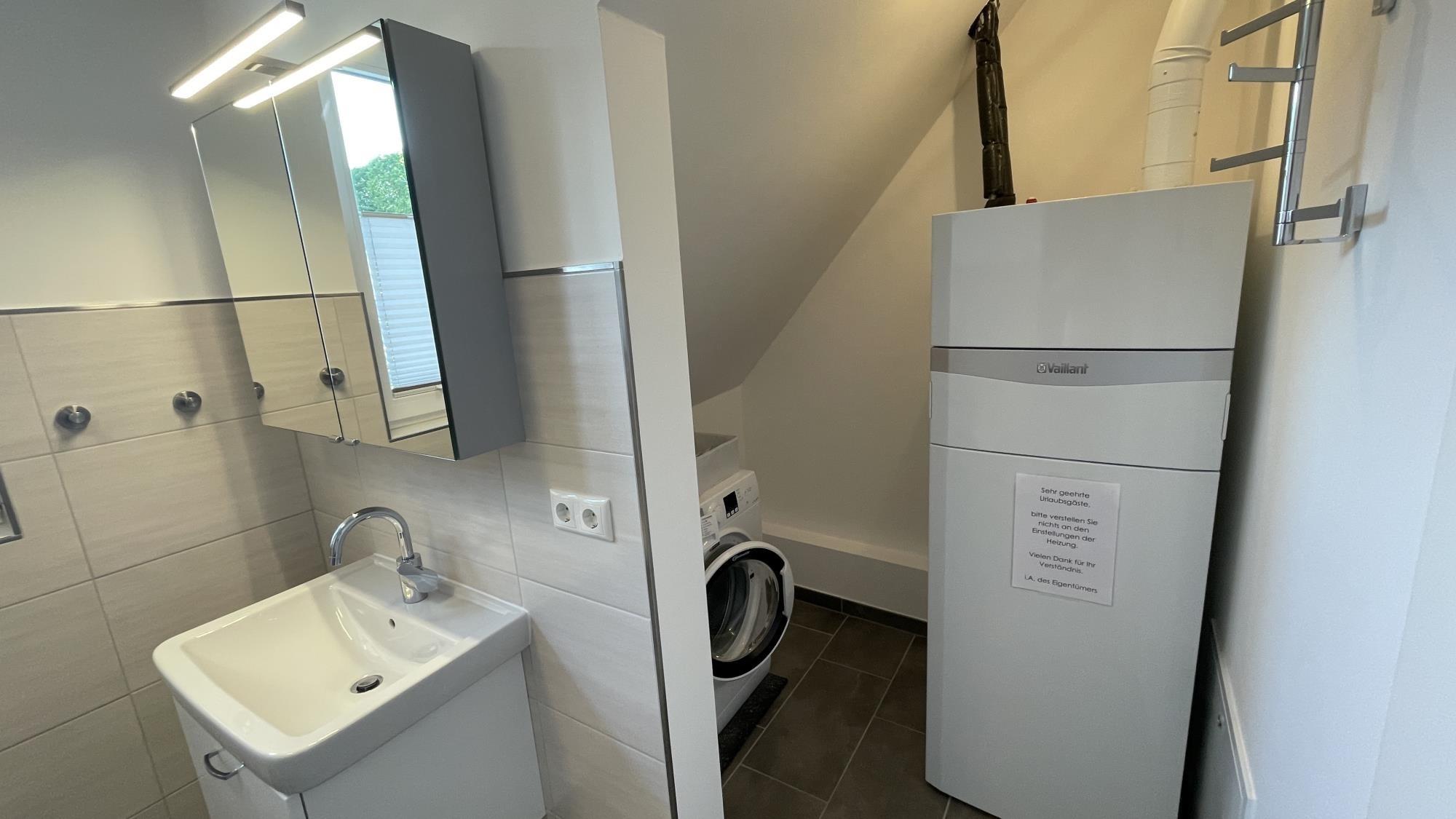 Die Fußbodenheizung im gesamten Haus schafft zu jeder Jahreszeit eine angenehme Wohlfühlatmosphäre. Eine Waschmaschine im Dachgeschoss rundet die Ausstattung ab und sorgt für zusätzlichen Komfort – besonders bei längeren Aufenthalten.