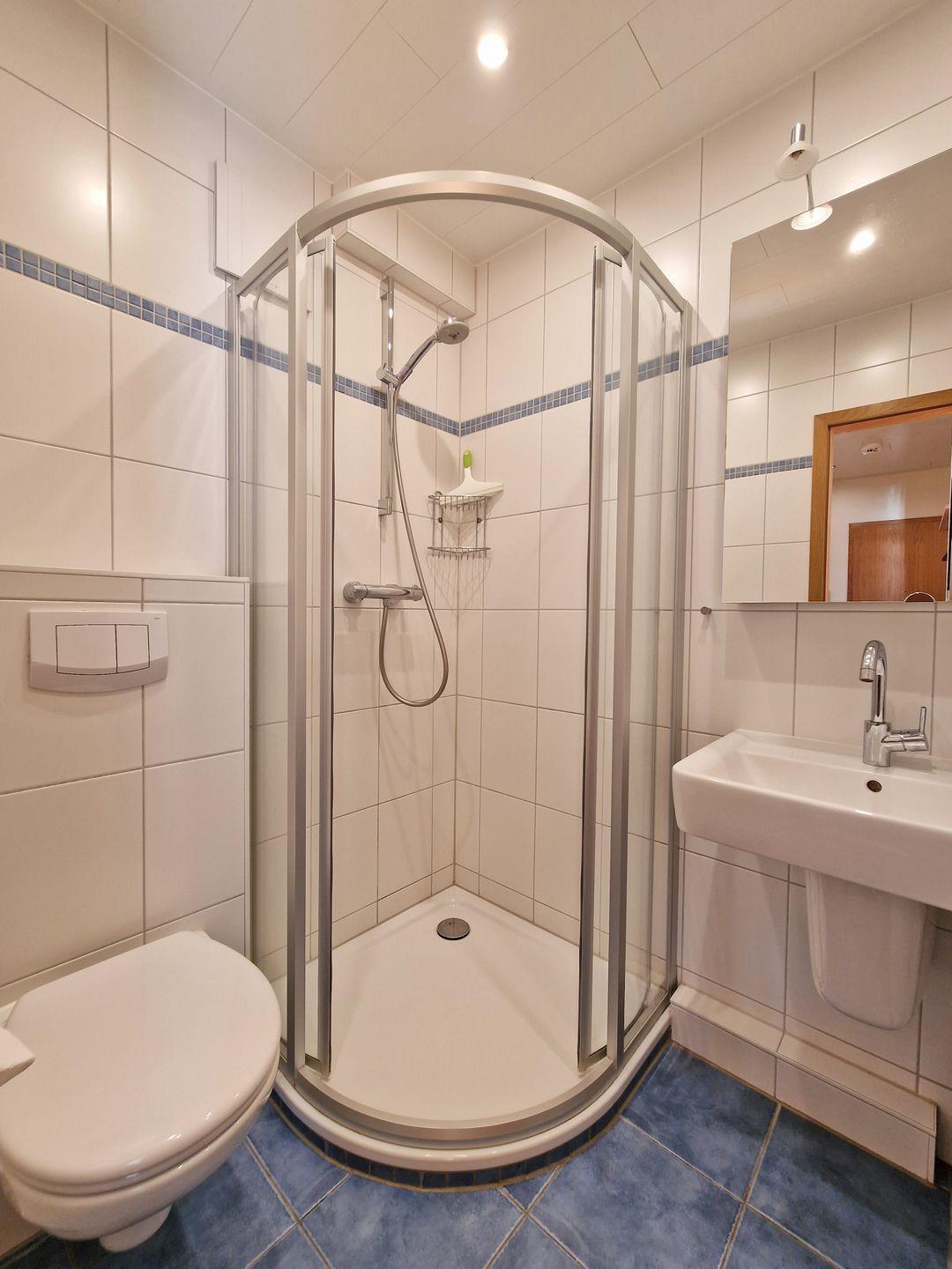 Neues, neuzeitliches Duschbad/WC mit Duschkabine.