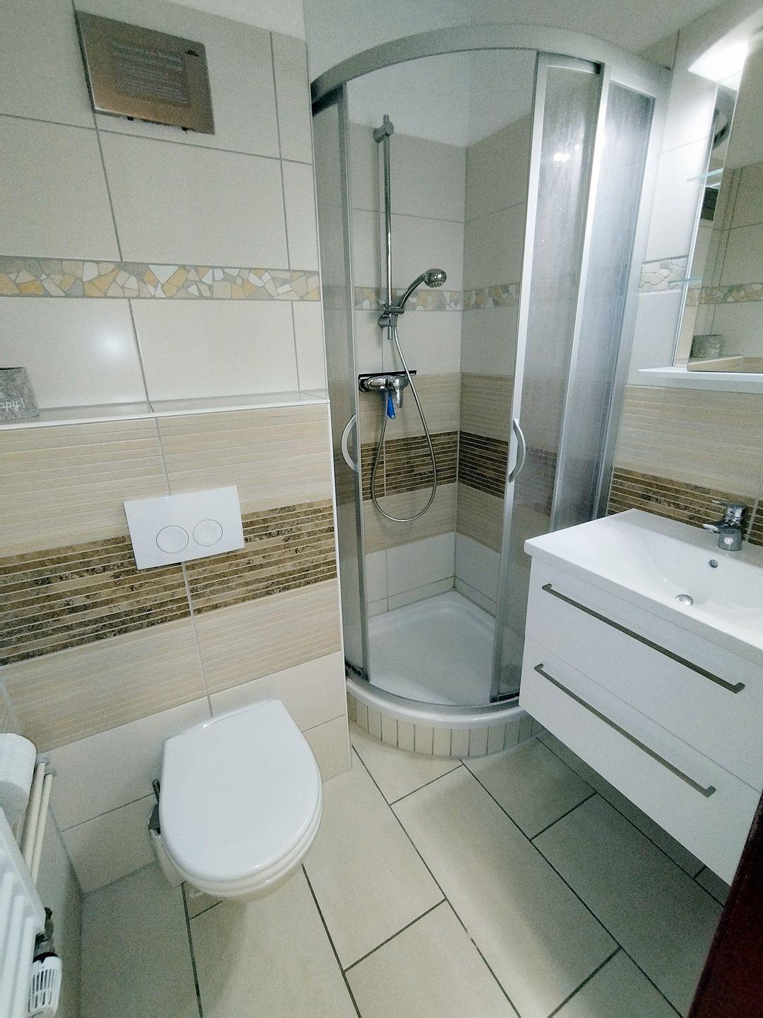 Sehr schön gestaltetes modernes Bad mit DU/WC und Kabine.