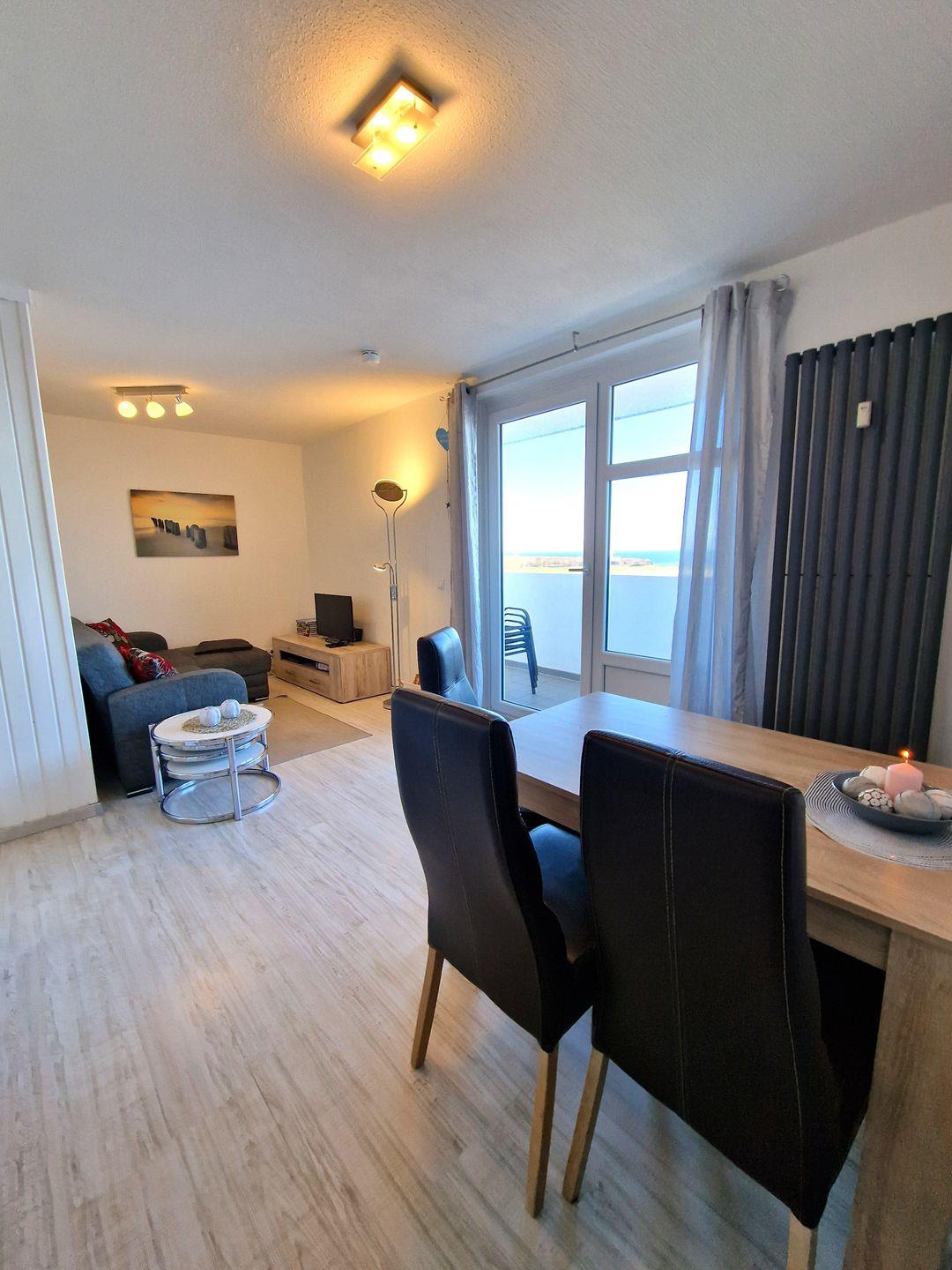 Stilvolle Ferienwohnung, komplett mit hellem Laminat ausgelegt, in der 9. Etage mit tollem Panoramablick über die Ostsee und separatem Schlafzimmer!!