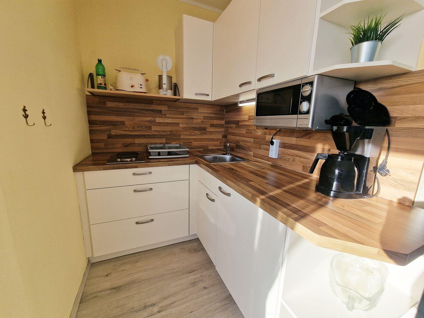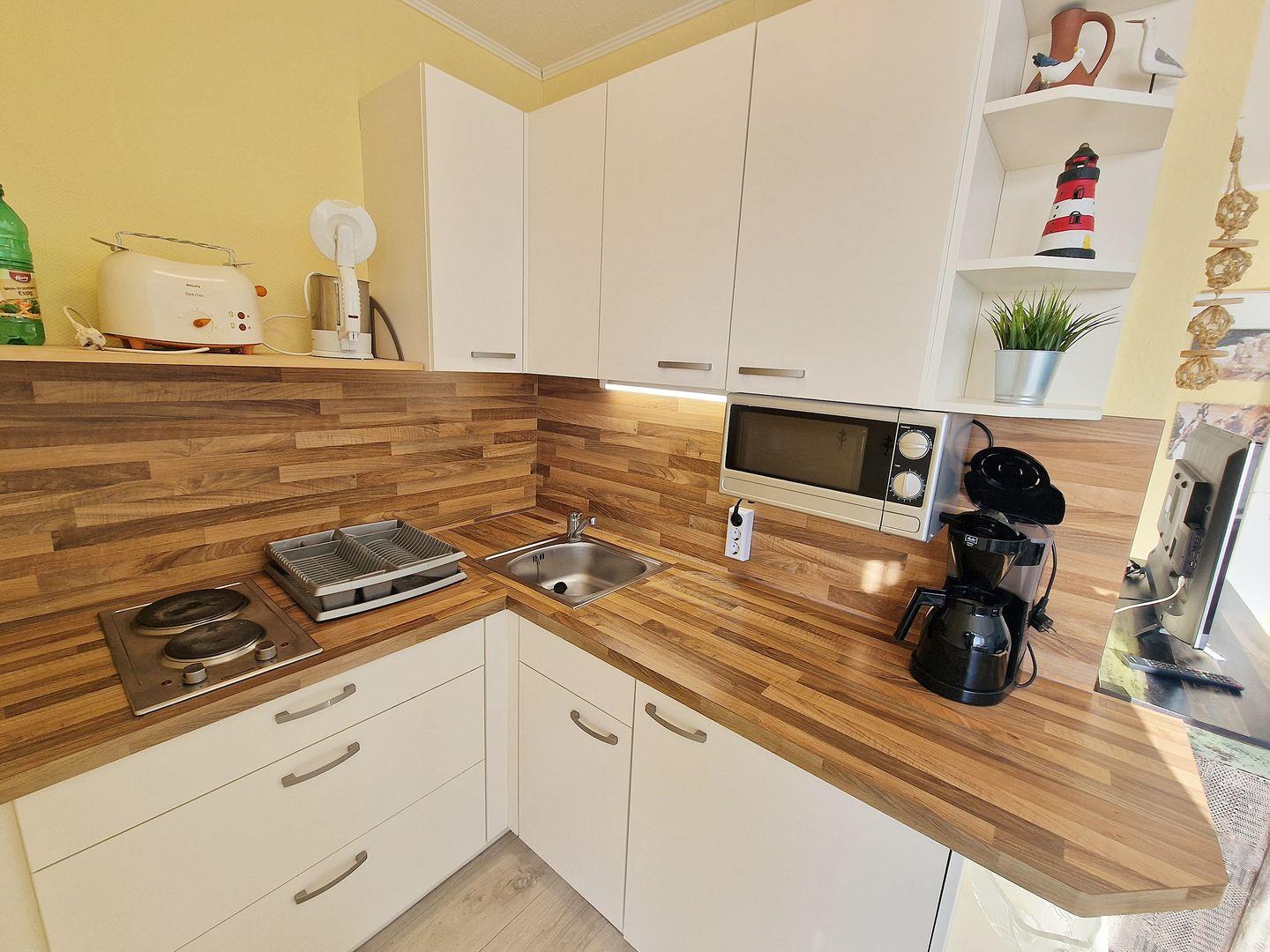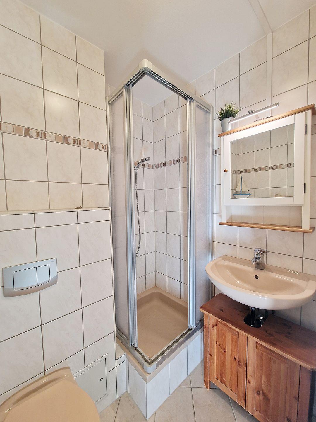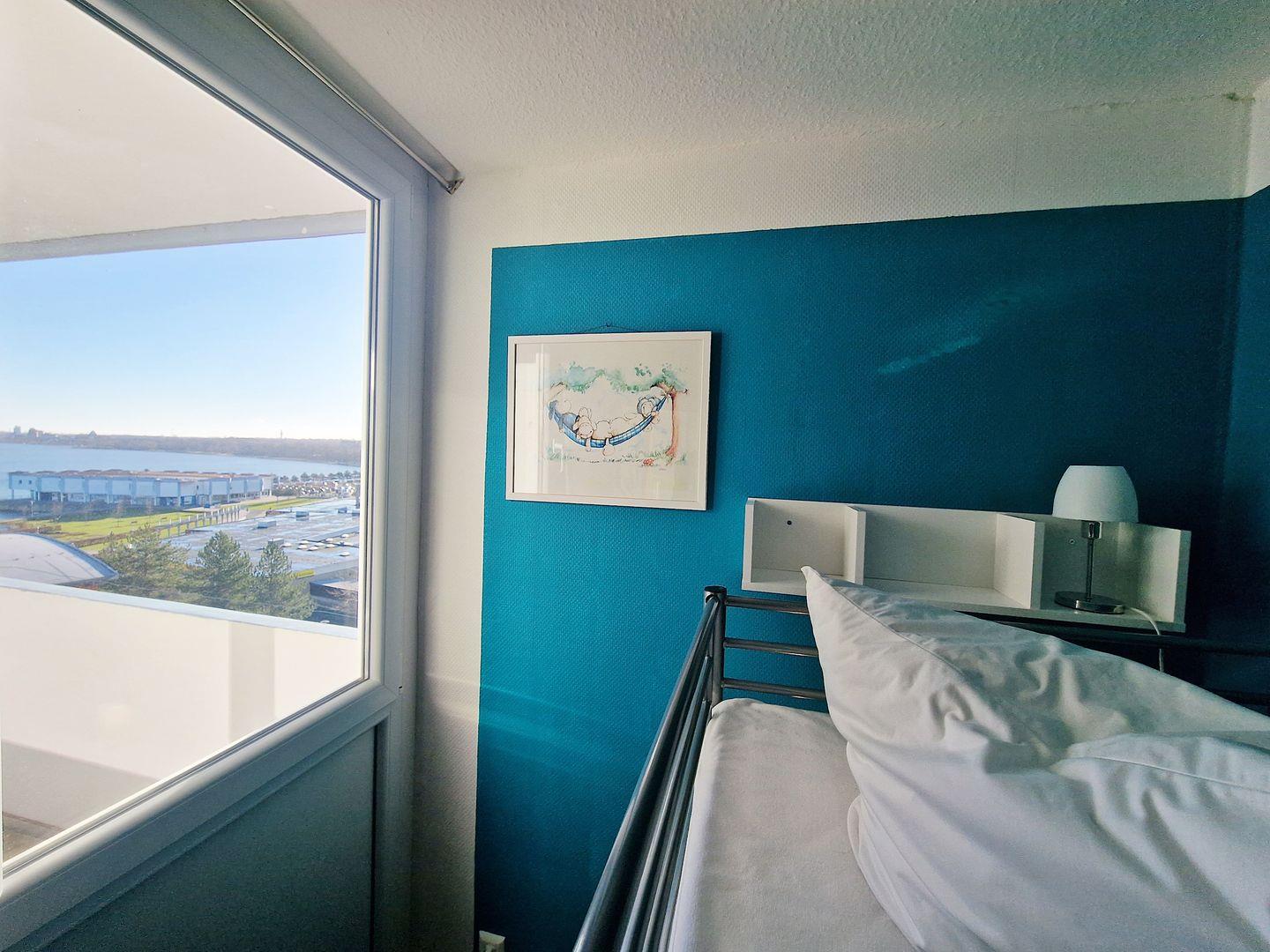 Willkommen in unserer sonnigen Ferienwohnung B07-001 im 7. Obergeschoss – ein gemütliches Zuhause auf Zeit für bis zu 4 Personen, perfekt für Familien, Paare oder kleine Gruppen. Auf ca. 45 m² erwartet Sie eine einladende und funktional ausgestattete Unterkunft, die mit nordischer Behaglichkeit überzeugt. Der hell gestaltete Wohnbereich bietet eine Sofaecke, einen Essplatz am Fenster und Entertainment mit TV, Radio und CD-Player – perfekt, um nach einem erlebnisreichen Tag an der Ostsee gemeinsam zu entspannen. Der Schlafbereich ist offen, aber durch einen Vorhang vom Wohnraum getrennt und bietet zwei komfortable Einzelbetten (jeweils 0,90 m x 2 m ) . Zusätzlich gibt es ein separates Kinderzimmer mit Etagenbett (0,90 m - 2 m), ideal für Kinder oder zusätzliche Gäste. Die kompakte, aber gut ausgestattete Kochnische lädt zu eigenen Kochmomenten ein und verfügt über alles, was Sie für den täglichen Bedarf brauchen: Herd, Mikrowelle, Kühlschrank mit Gefrierfach, Kaffeemaschine, Wasserkocher und Küchenutensilien. Das modern renovierte Badezimmer in freundlichen Farben mit Duschkabine sorgt für einen angenehmen Start in den Tag. Ein Sonnenbalkon zur Südseite mit Blick zum Binnensee macht diese Wohnung zu einem ganz besonderen Rückzugsort – ob für den Morgenkaffee in der Sonne oder den gemütlichen Ausklang des Tages mit Blick ins Grüne. Weitere Annehmlichkeiten wie WLAN, ein privater Parkplatz und die kinderfreundliche Ausstattung runden das Angebot ab und sorgen dafür, dass Sie sich rundum wohlfühlen. Diese Ferienwohnung ist die ideale Wahl für alle, die eine gemütliche, praktisch eingerichtete Unterkunft mit Balkon und Blick in einer beliebten Ferienanlage suchen.