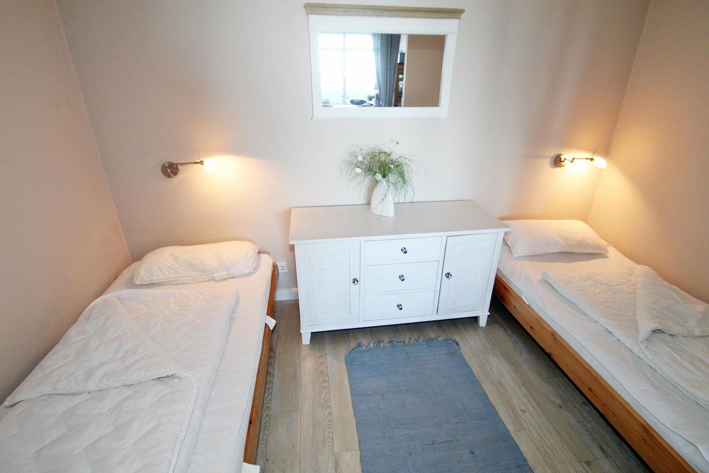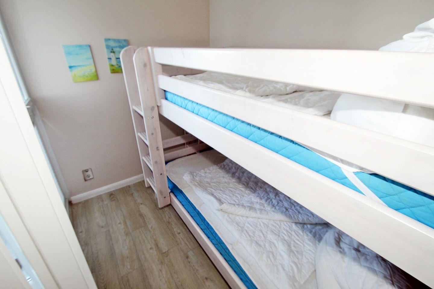 Der separate Schlafbereich verfügt über zwei Einzelbetten. Zusätzlich steht ein kleines Kinderzimmer mit Etagenbett zur Verfügung – ideal für Familien. Die gesamte Wohnung ist mit einem Allergiker freundlichen, hochwertigen Bodenbelag ausgestattet und bietet dadurch ein besonders angenehmes Wohnklima. Das Badezimmer ist modern gestaltet und mit Dusche, WC, Waschbecken sowie einem Haartrockner ausgestattet. Selbstverständlich steht Ihnen in der gesamten Wohnung kostenfreies WLAN zur Verfügung. Kostenfreie Parkplätze stehen in unmittelbarer Nähe der Anlage zur Verfügung. Aus Rücksicht auf Allergiker ist die Wohnung eine Nichtraucherunterkunft und Haustiere sind leider nicht erlaubt.