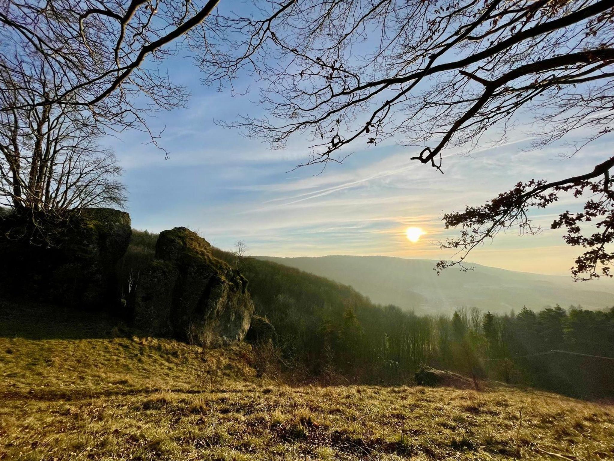 Vom Wohnzimmer gelangt man auf eine kleine Terrasse mit wunderbarem Blick in den Wald. Ein idealer Platz um die Stille zu genießen.