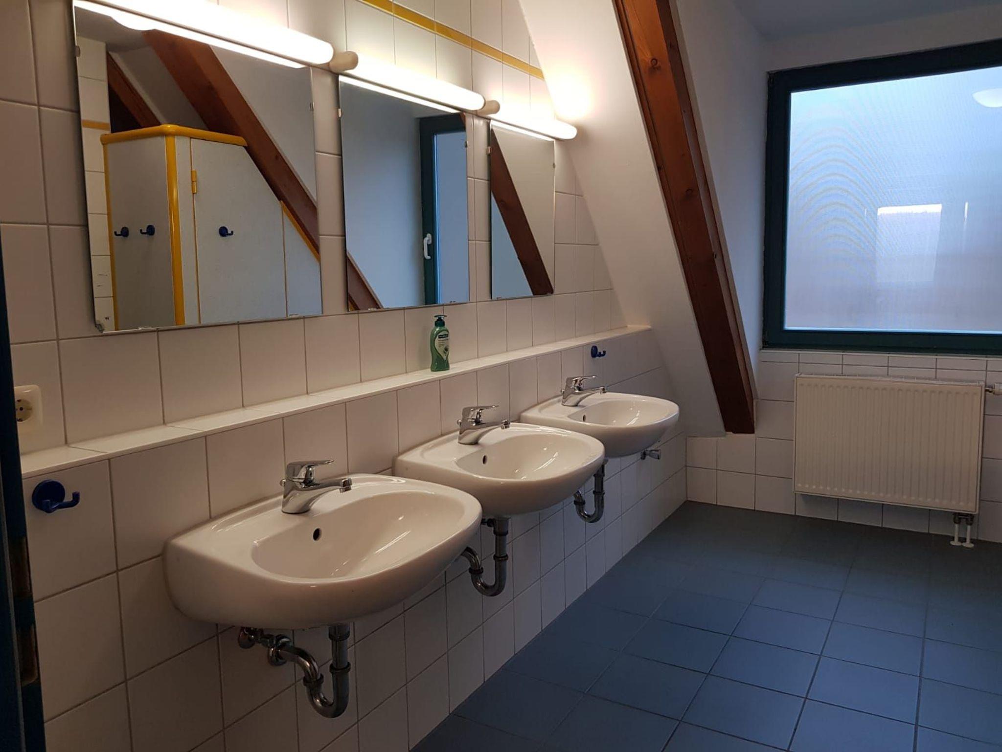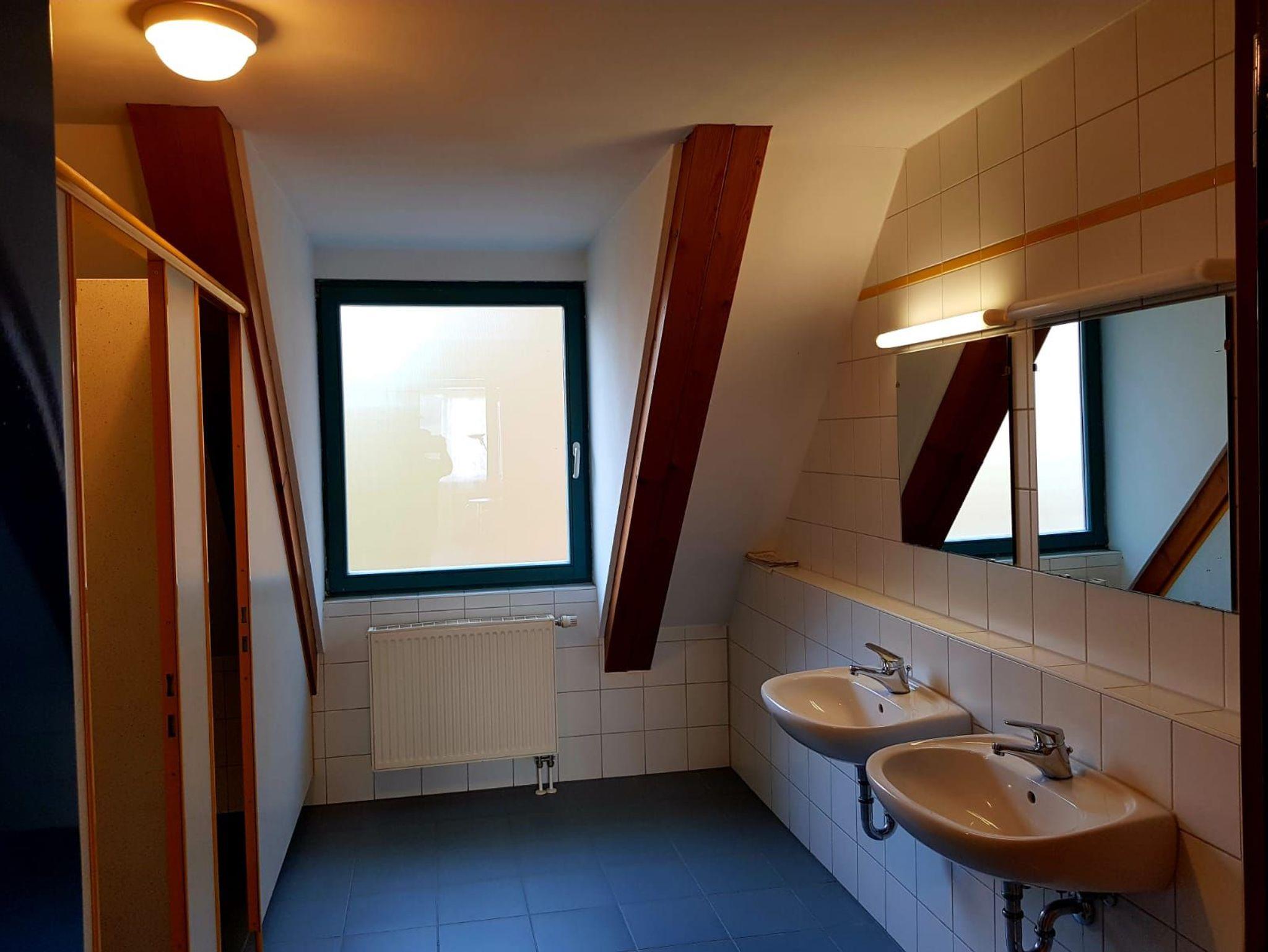 Im Untergeschoss befinden sich ein Gruppenraum mit ca. 35 qm und ein Seminar- bzw. Speiseraum mit ca. 100 qm (abteilbar in 60 qm u. 40 qm), Küche, Mehrzweckraum und getrennten Toiletten. Im Erdgeschoss sind 2 x 8-Bettzimmer, 1 x 4-Bettzimmer, 3 x 2-Bettzimmer mit separatem Bad/Dusche, 2 getrennte Sammelduschen mit Toilettenraum und Schuhraum. Im Obergeschoss sind 2 x 8-Bettzimmer, 1 x 4-Bettzimmer, 1 x 4-Bettzimmer mit separatem Bad/Dusche, 1 x 2-Bettzimmer mit separatem Bad/Dusche, 2 getrennte Sammelduschen und Toilettenraum.