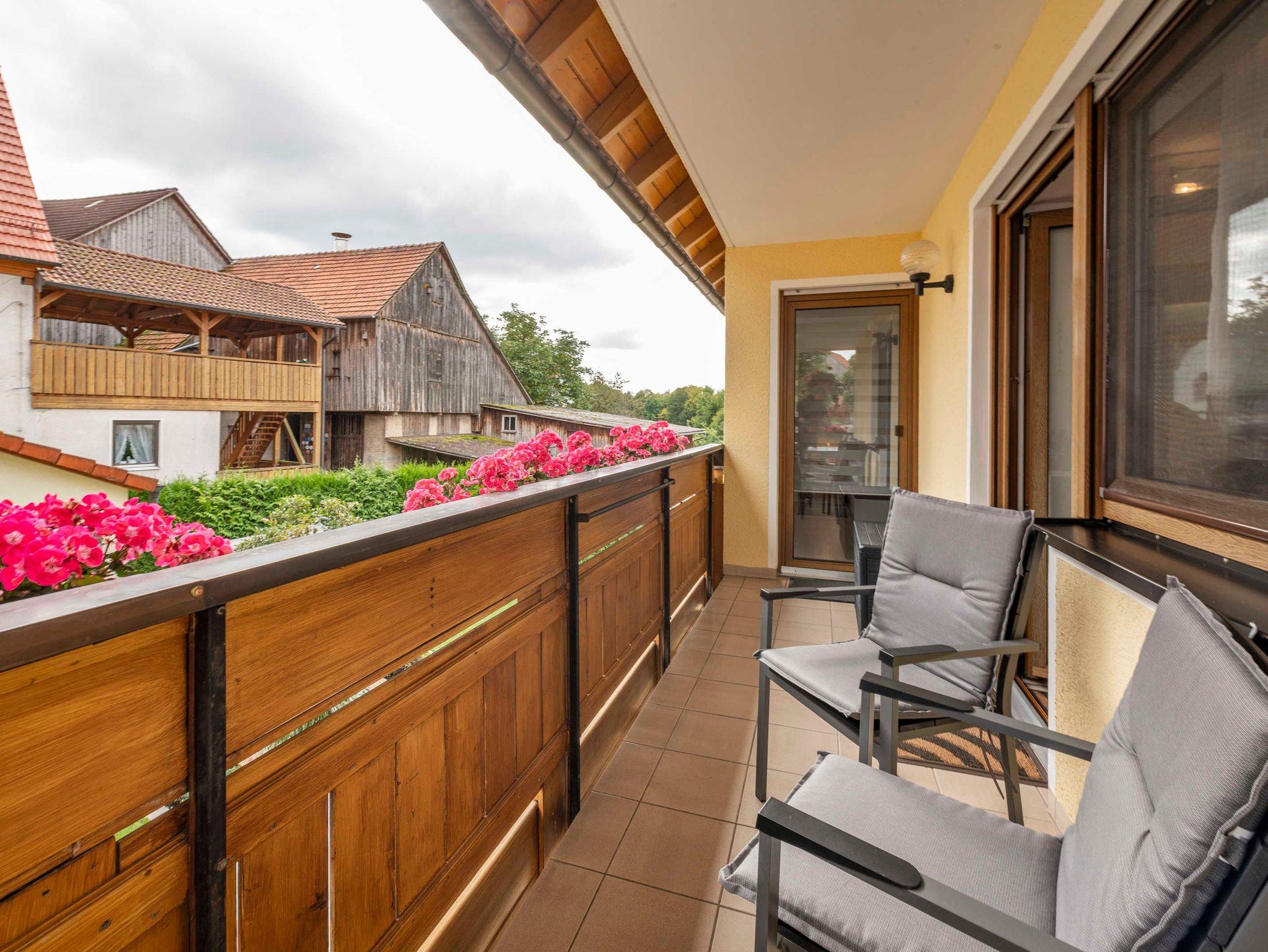 Doppelzimmer mit Frühstück im 2. Stockwerk (nur über Treppe erreichbar) mit 180x200er Bett, Laminatboden und Balkon. Das dazugehörige, geräumige, geflieste Bad ist mit einer begehbaren Dusche und WC ausgestattet. Reichhaltiges Frühstücksbuffet inklusive. Parkplätze und E-Ladestation (Wallbox) am Haus vorhanden.
