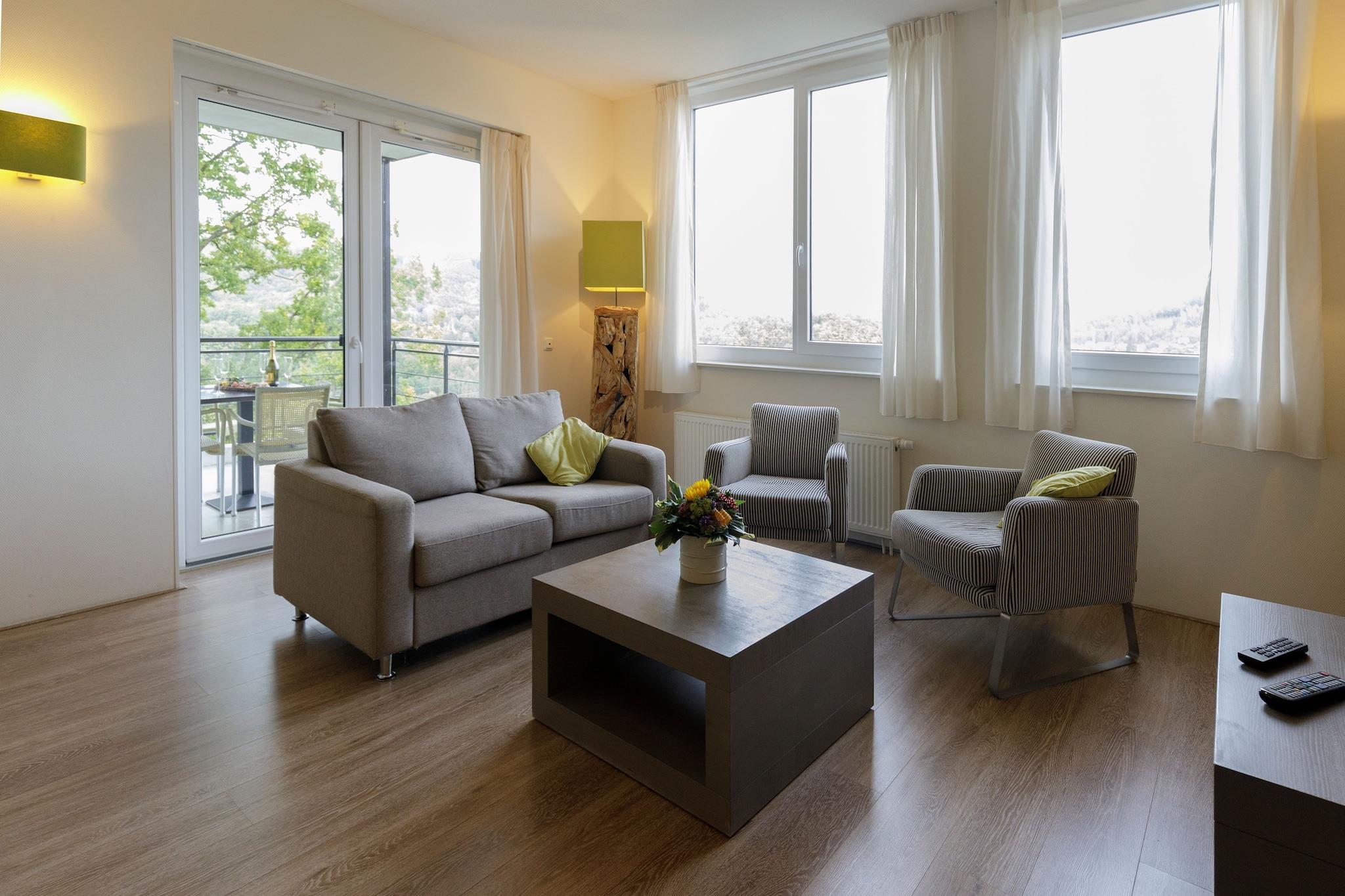 Moderne komfort i naturen Bo i en vakkert designet leilighet på det naturskjønne Eifeler Tor Resort, hvor komfort møter avslapning. Den stilige stuen med spiseplass går over i et fullt utstyrt åpent kjøkken, perfekt for koselige måltider sammen. Etter en dag med utforsking kan du slappe av i badets beroligende badstue eller nyte den friske luften fra din private balkong med hagemøbler. Gjestene har også tilgang til felles innendørs- og utendørsbassenger, noe som gjør det til et ideelt sted for både sommerbading og vinteravslapning. Familier vil elske den barnevennlige atmosfæren, og kjæledyr er også velkomne, med turstier rett utenfor døren. Utforsk Eifels underverker Leiligheten ligger i nærheten av den berømte innsjøen Rursee, ideell for båtliv, sykling eller piknik ved innsjøen. Bare en kort tur unna finner du Eifel nasjonalpark, et paradis av skog og dyreliv med godt merkede turstier. Historieelskere vil sette pris på Heimbach slott, mens kulturinteresserte kan besøke Mariawald kloster, kjent for sine fredelige omgivelser og lokale likører. Lokale spisesteder Etter sightseeing kan du unne deg smakene fra regionen. Prøv Brauhaus Heimbach for solide tyske måltider med lokal øl, eller nyt en middag ved innsjøen på Haus am See med utsikt over Rursee. For noe søtt serverer Café Lieschen hjemmelagde kaker og kaffe i sjarmerende omgivelser. Mange restauranter ønsker kjæledyr velkommen på terrassene sine, noe som gjør det enkelt å ta med din firbente venn. Fra rustikke retter til naturskjønne spisesteder blir hvert måltid en del av opplevelsen. Merk: På Dormio Resort Eifeler Tor vil innendørsbassenget være stengt fra mandag 17. november til torsdag 20. november 2025. Årsaken til denne stengingen er årlig vedlikeholdsarbeid. Fredag morgen 21. november vil innendørsbassenget være tilgjengelig for gjester igjen. Turistskatt er 7 % av leiebeløpet, som skal betales i parken.