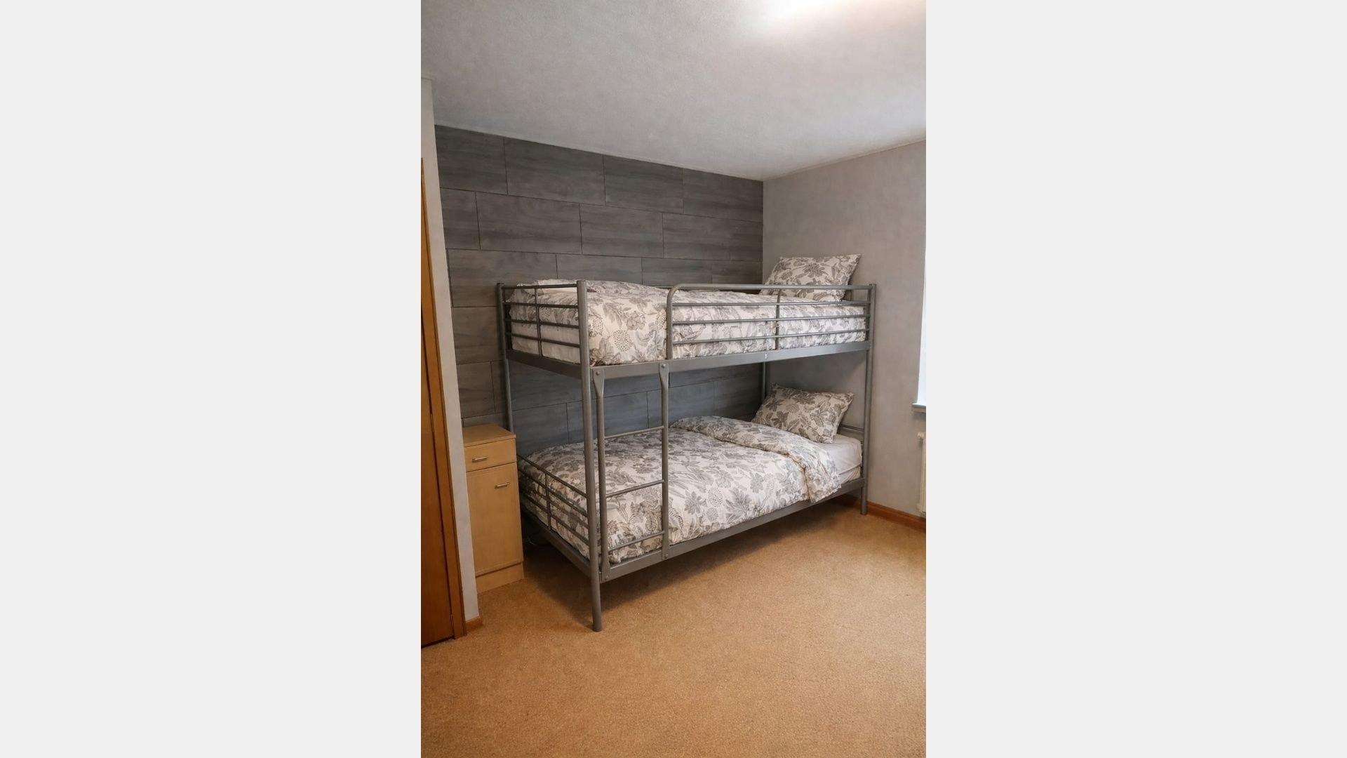 Schlafzimmer mit Doppelbett (1,80 × 2,00 m) und Etagenbett (2 × 90 × 2,00 m).