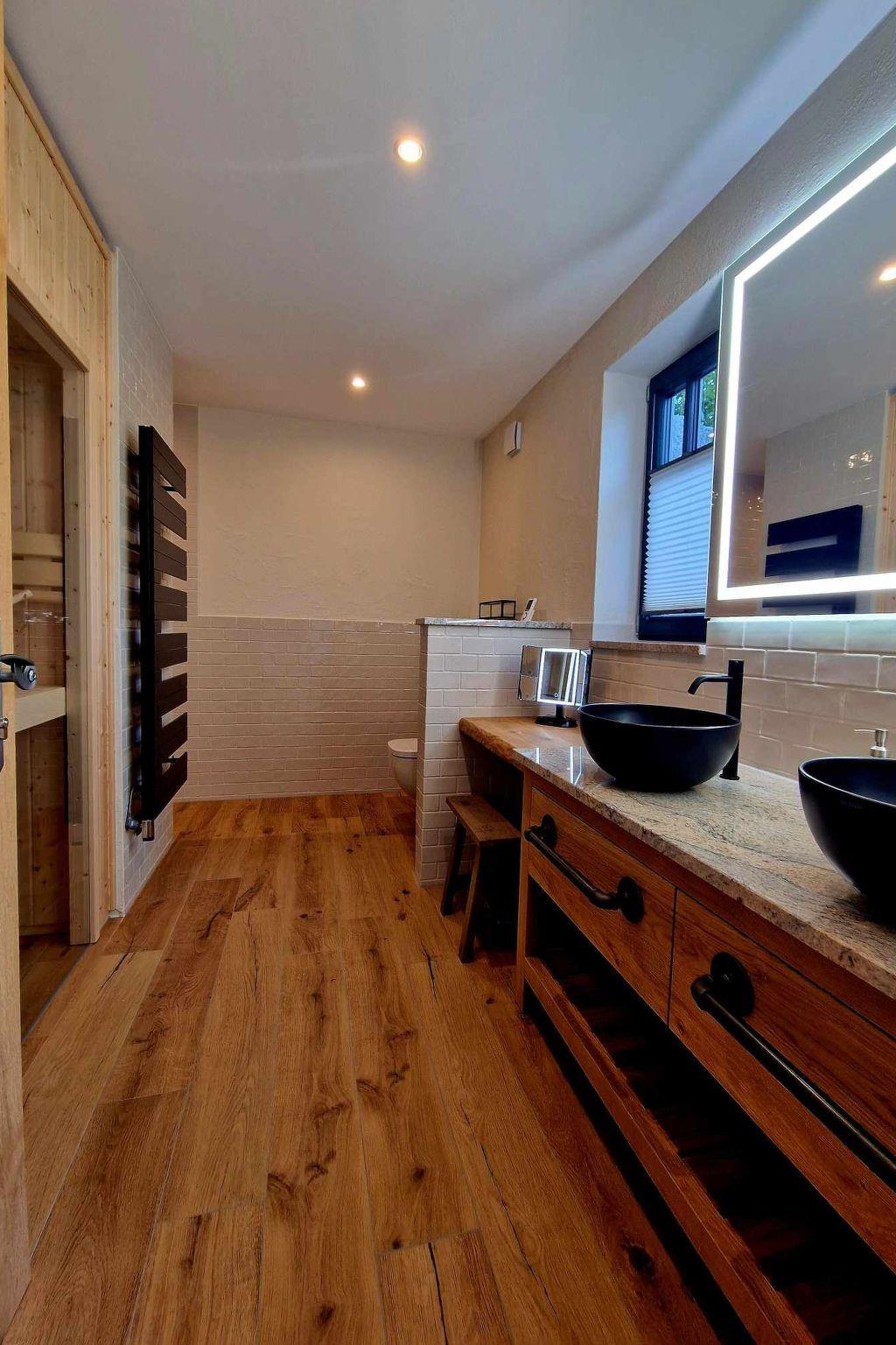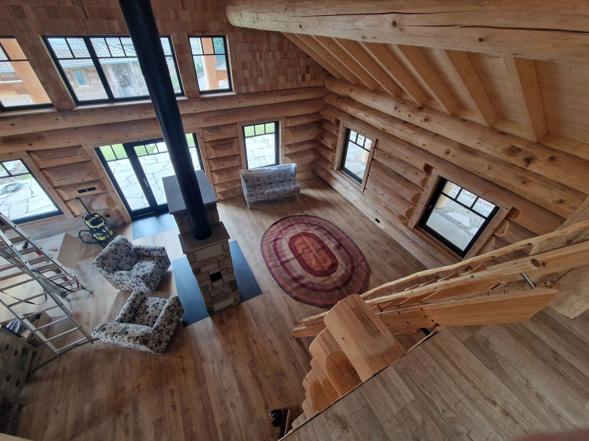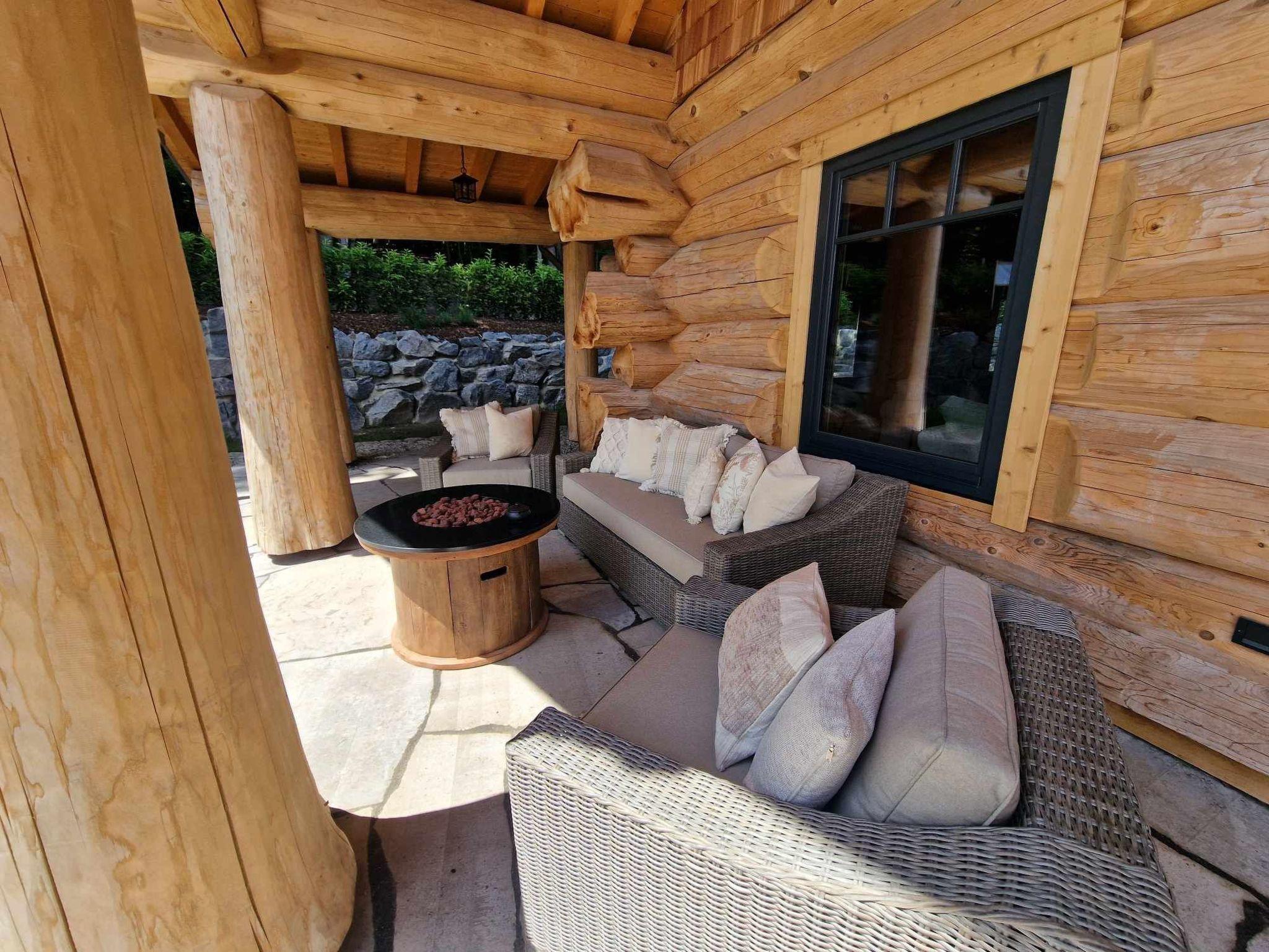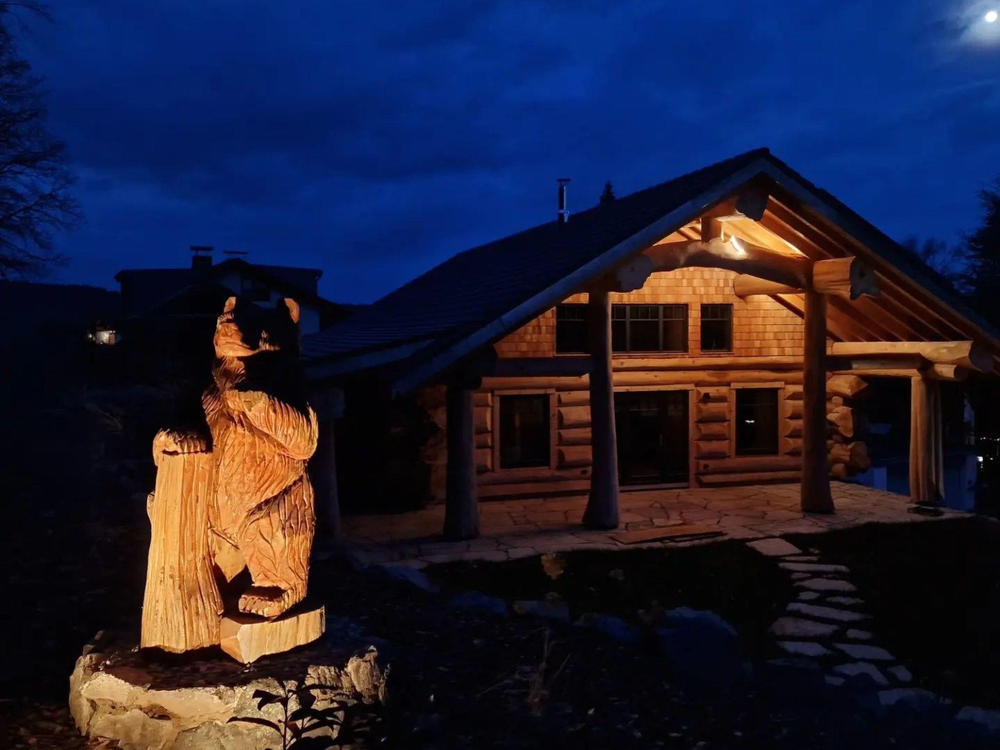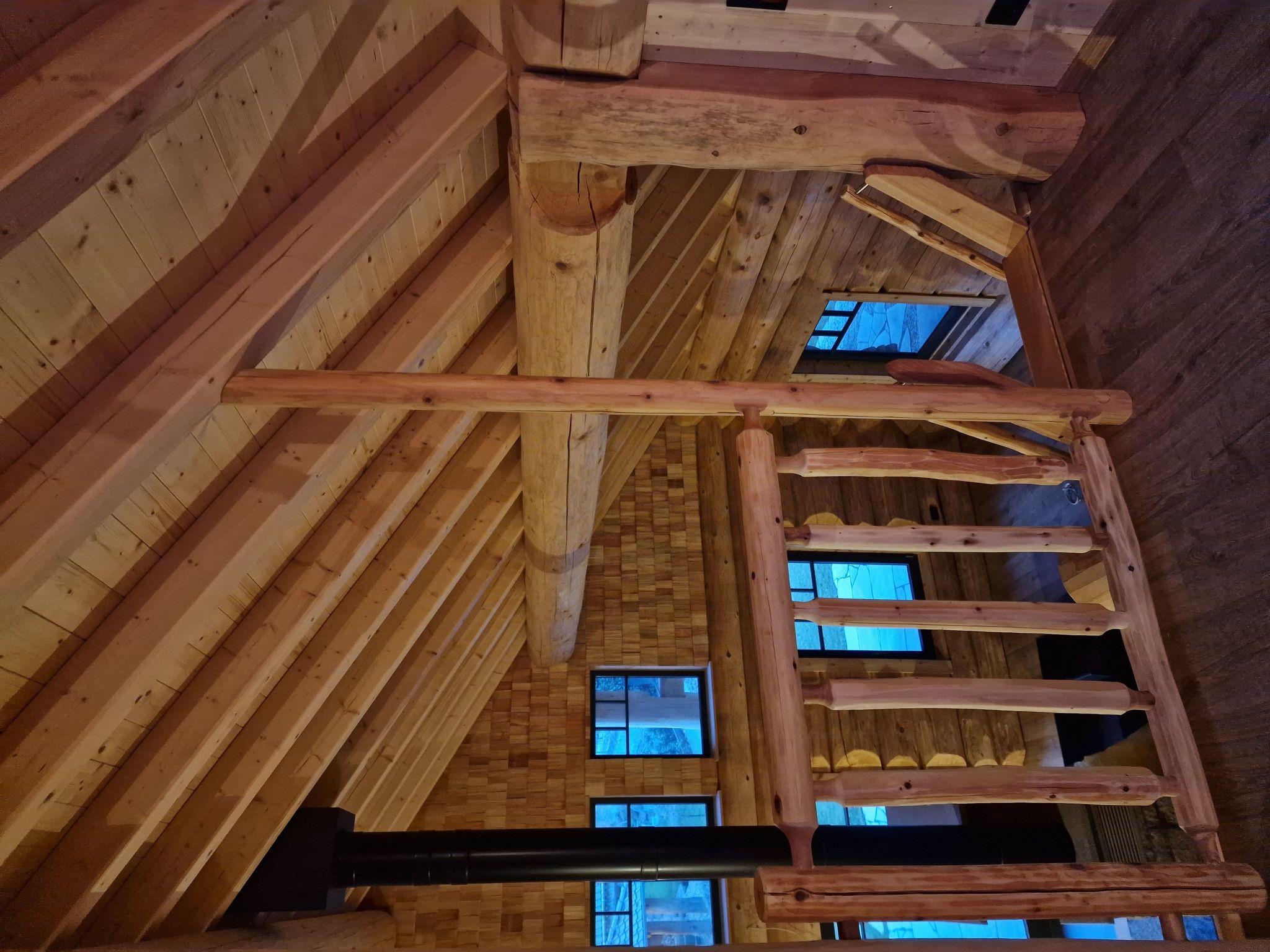 The perfect vacation retreat for up to 6 guests, with over 272 sq meters. The natural red cedar log cabin was built in Canada in 2023 and disassembled and shipped to its current location in The Spessart where it was reassembled. The interior has been professionally designed and decorated with attention to detail, comfort and luxury. The living area is open concept, promoting family togetherness. During your stay you may cook your own meals in the beautiful, fully equipped chef’s kitchen. Or, let someone else do the cooking and enjoy one of the many local restaurants. The bed and chairs hang from the ceiling. Climb the ladder to see what other fun surprises await! You won’t run out of exciting activities nearby, many in walking distance. After a fun filled day, come back and relax in the sauna, warm up beside the double-sided fireplace in the great room, or enjoy drinks around the firepit on the terrace. Your hosts are always happy to assist you with restaurant or activity reservations.