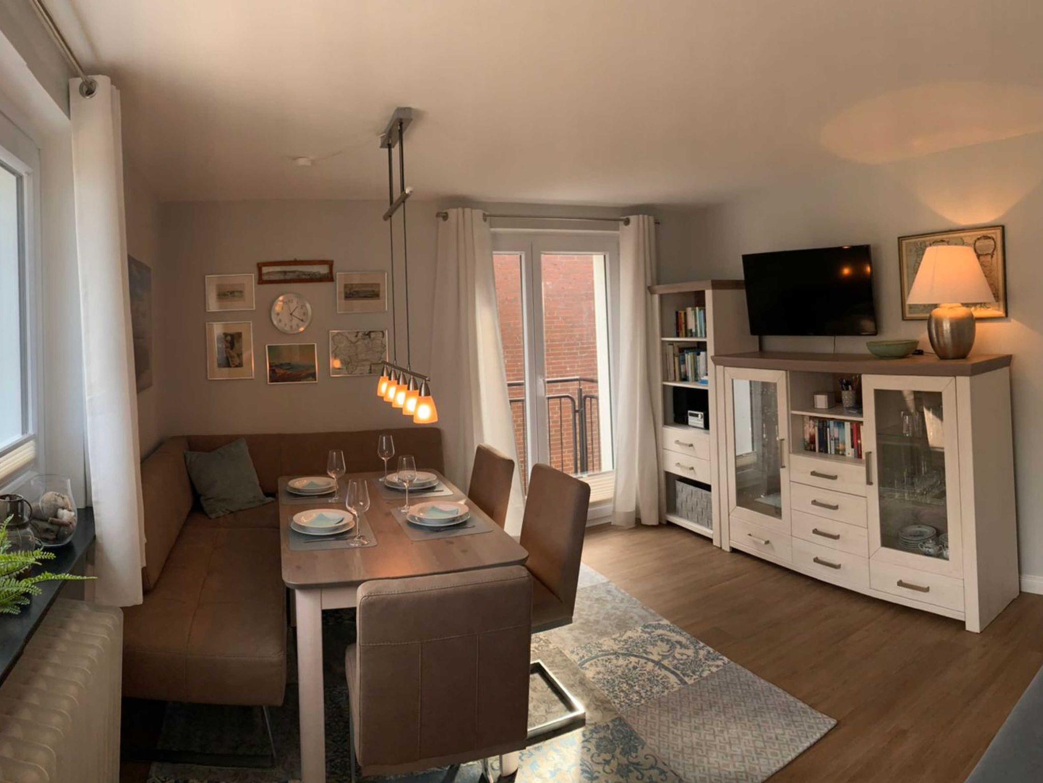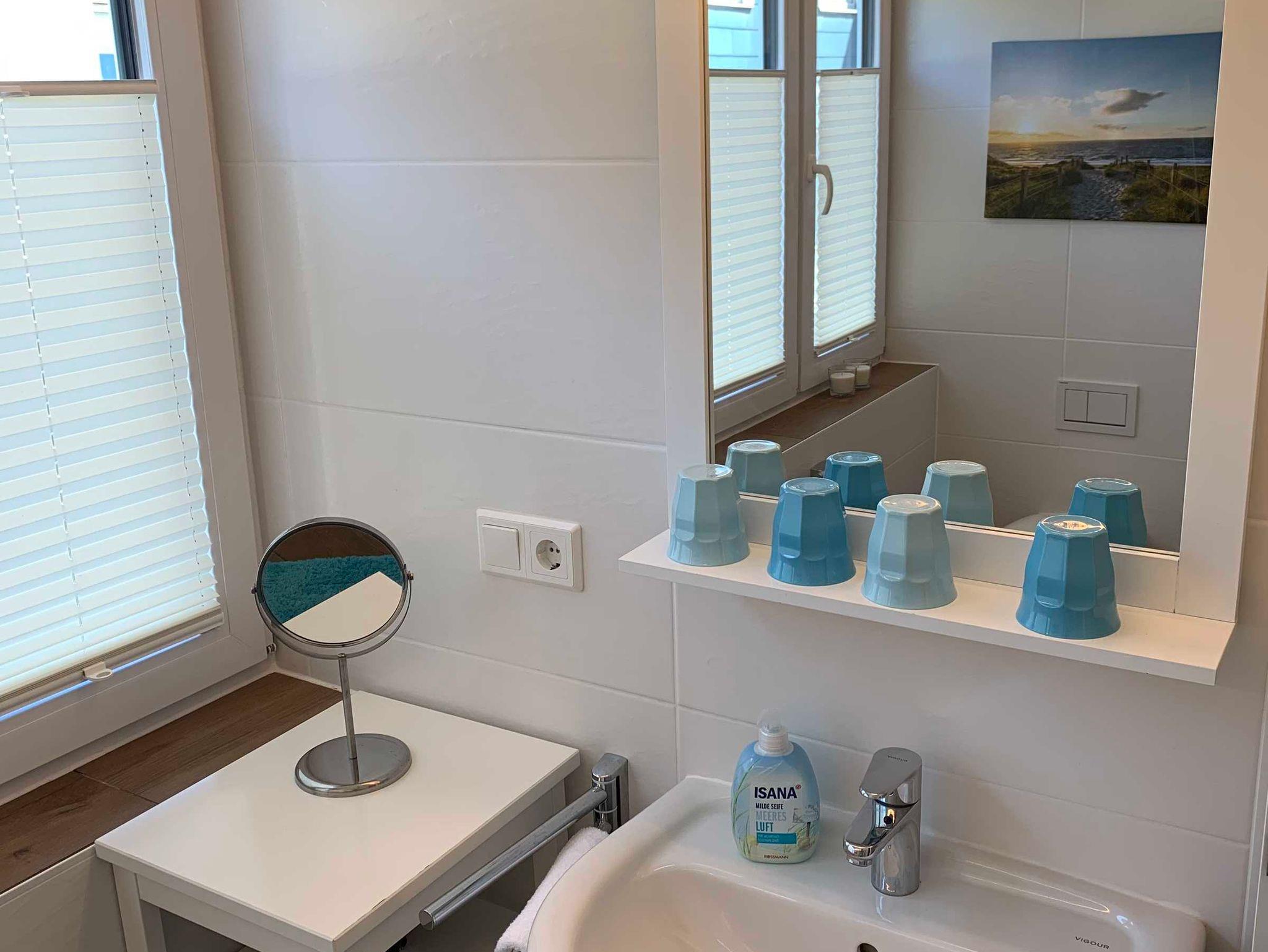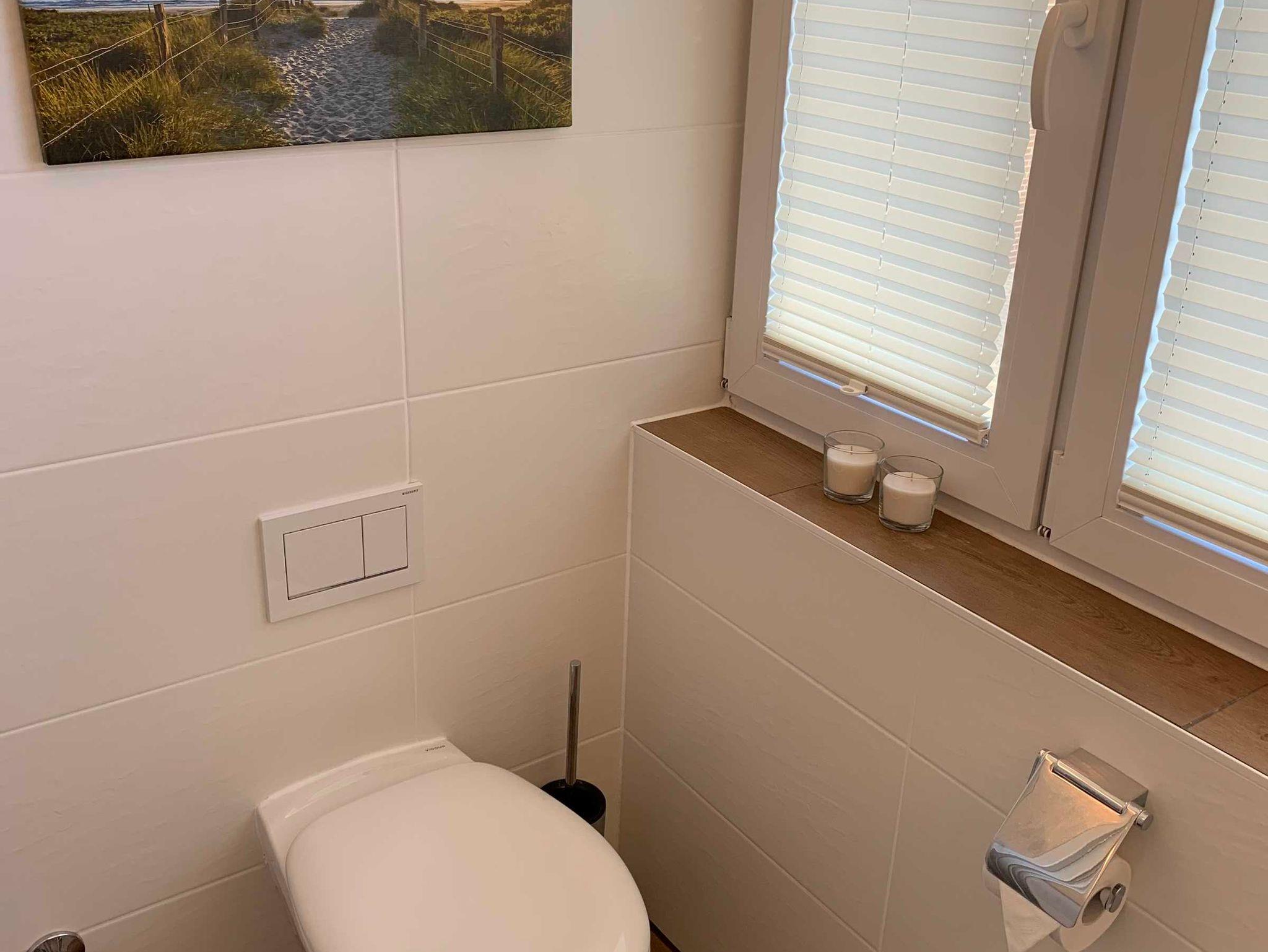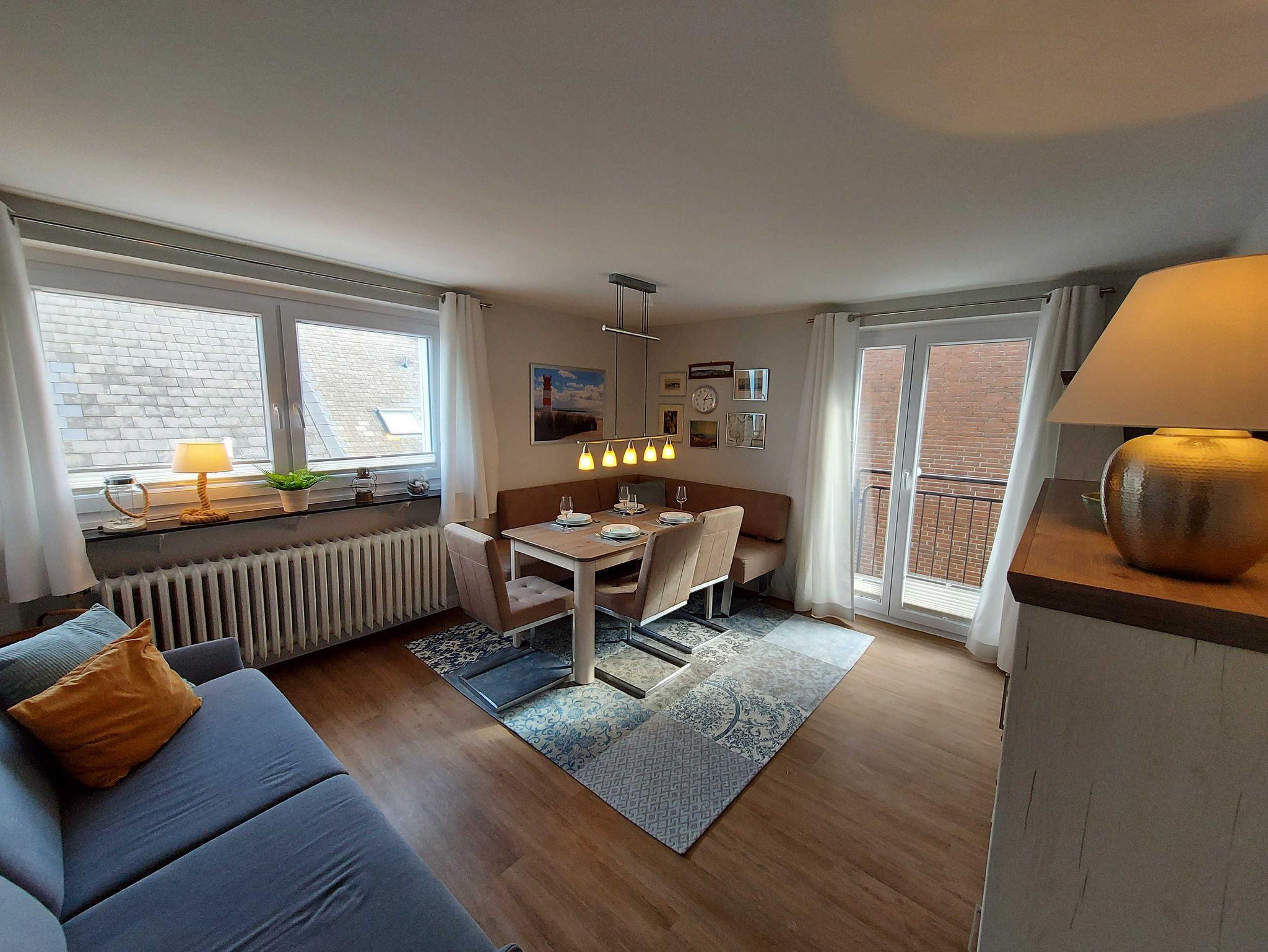 Die Wohnung im Obergeschoss hat 49 qm, zwei Zimmer, Küche und ein Bad mit Dusche/WC (neu in 2018). Das Schlafzimmer hat ein Doppelbett und einen kleinen Balkon mit seitlichem Seeblick. Ein zweiter Balkon befindet sich am Wohnzimmer. Dort gibt es auch eine Sitzecke mit Sofa, ein Essplatz, SAT-TV und ein Radio. Die komplett ausgestattete Küche hat einen Herd mit Backofen, Mikrowelle und Geschirrspüler.