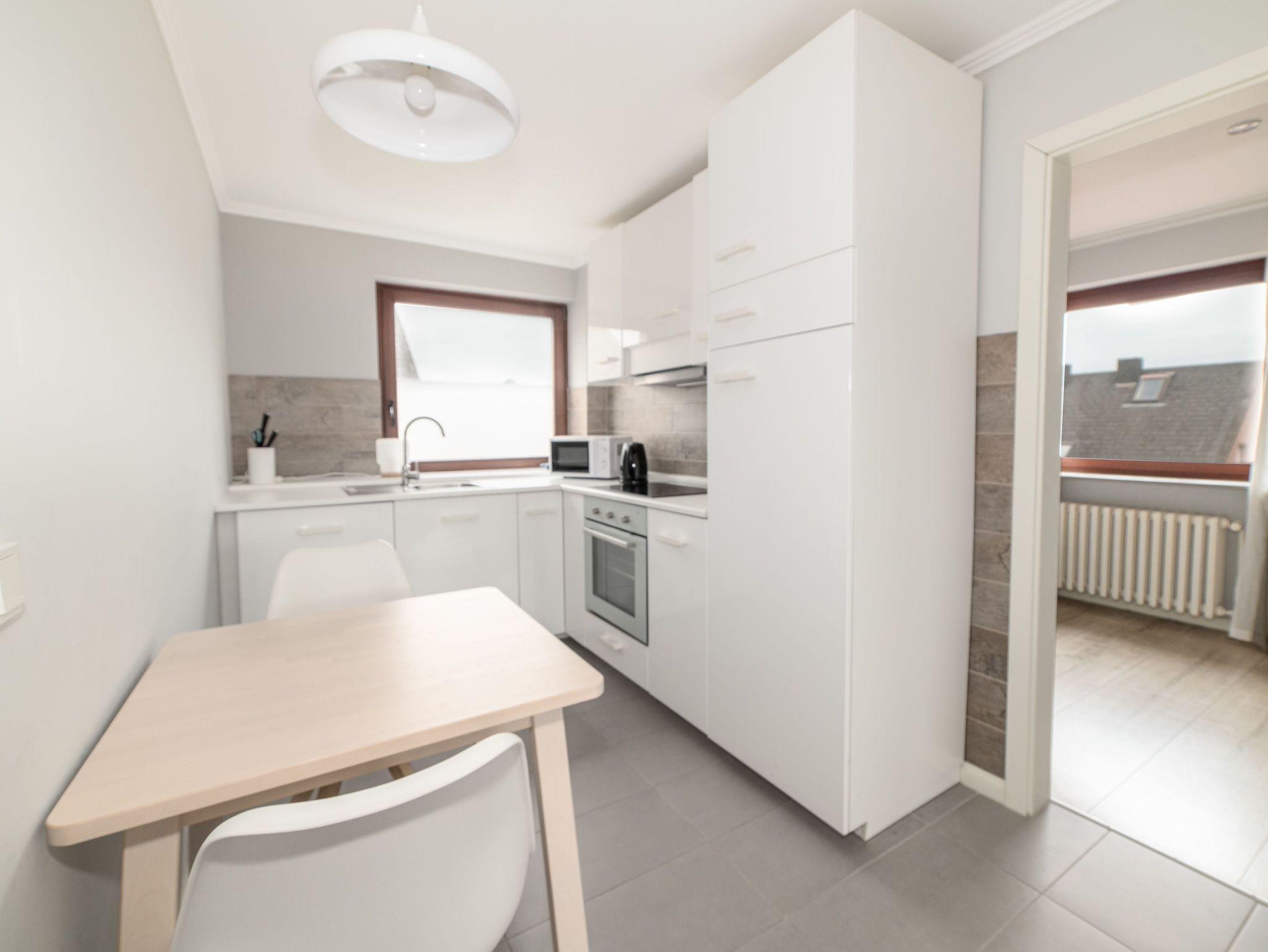 In dieser Ferienwohnung befinden sich zwei Schlafzimmer mit jeweils einem Doppelbett, ein Wohnzimmer mit Schlafsofa, eine Küche und ein Bad mit Dusche. Zudem verfügt jedes Zimmer über einen eigenen Fernseher. In der Ferienwohnung finden Sie außerdem frische Handtücher und bequeme Bettwäsche.