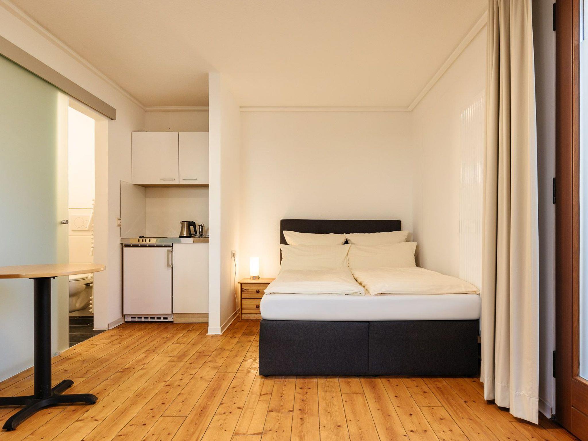 Alle verfügen über Pantry-Küchen, Flat-TV und kostenloses WLAN. Selbstverständlich dürfen Sie eine Kaffeemaschine, einen Wasserkocher, einen Fön und Bettwäsche voraussetzen.