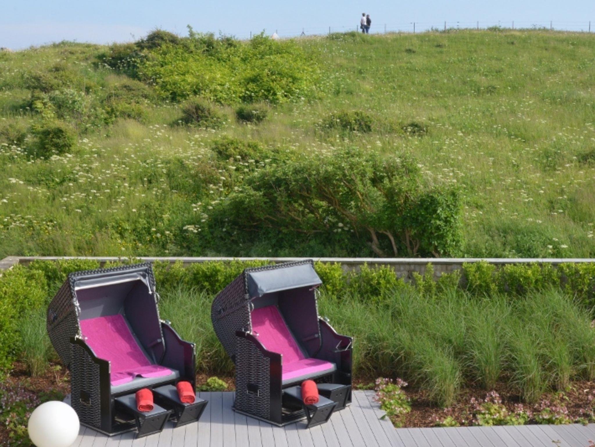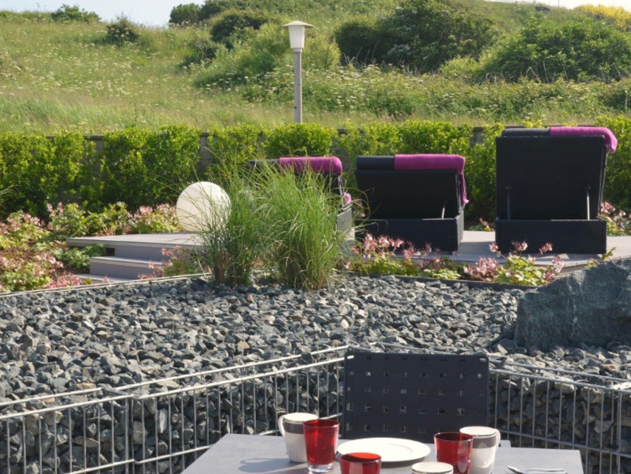 Der schöne 200 qm große Garten bietet eine Terasse mit überdachtem Essplatz und Ruhezonen mit Strandkorb und Sonnenliegen. Bis zu acht Personen können hier herrlich entspannen. Möglichkeiten für die Unterbringung einer 9. und 10. Person können beim Verwalter erfragt werden. (Nicht Online buchbar).