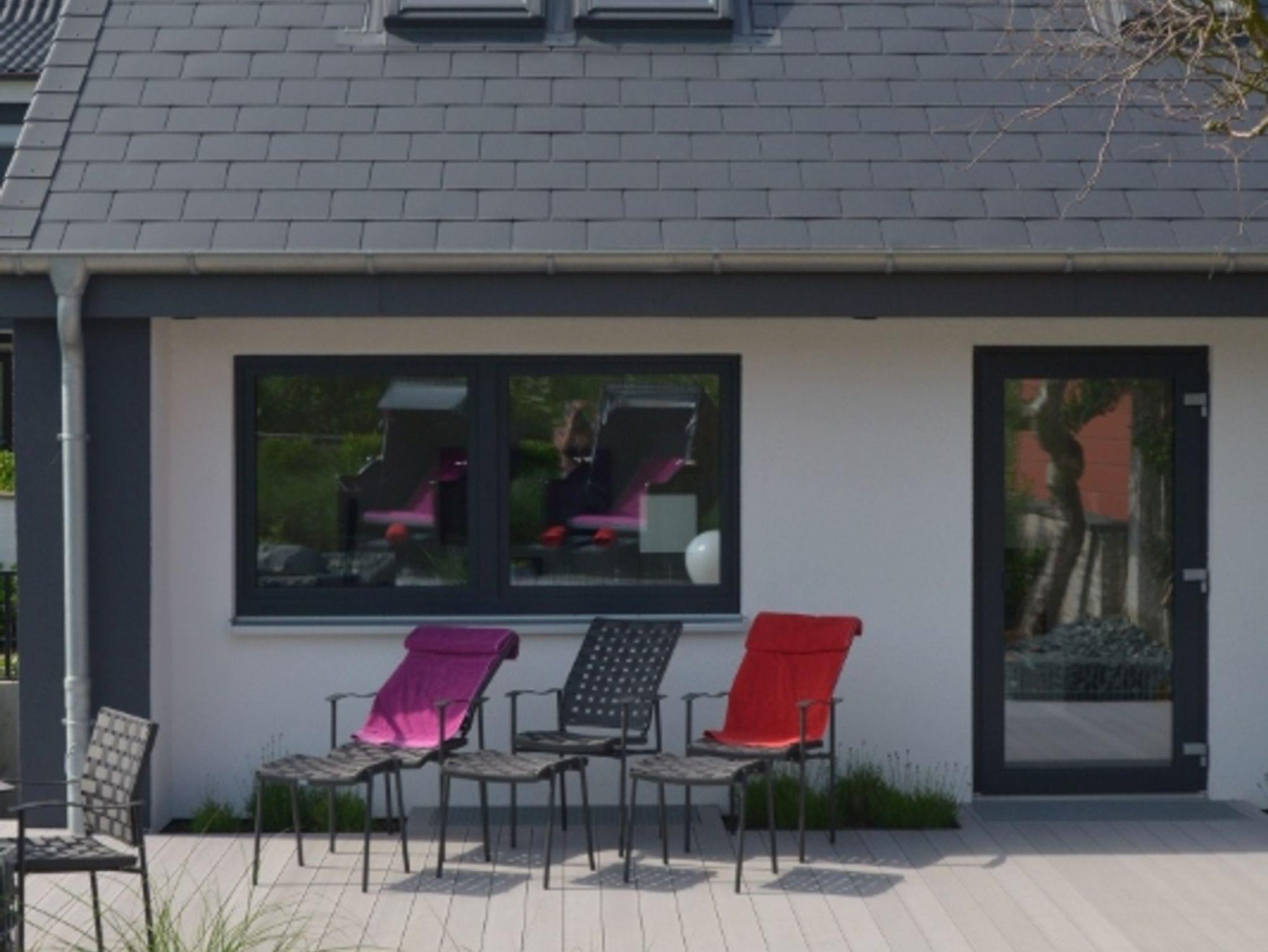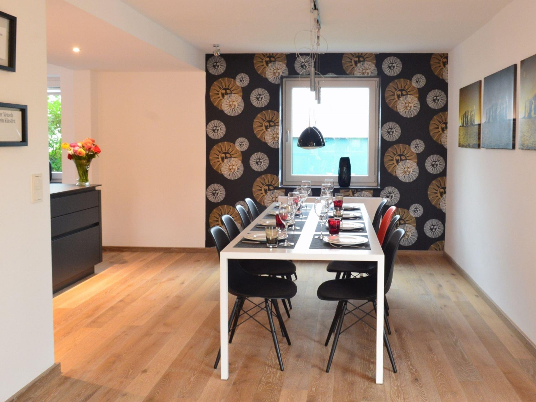 modernisiert und neu eingerichtet. Vier Schlafzimmer, vier Bäder, Gäste-WC, Kamin im Wohnzimmer. Im Garten (200 qm) gibt es Ruhezonen mit Strandkorb und Sonnenliegen und eine Terrasse mit Essplatz. Moderne Küche mit Geschirrspüler, Kühl- und Gefrierschrank, Kochinsel offen gestaltet zum Esszimmer. Waschmaschine,Trockner und Bügelmöglichkeit im Untergeschoss.