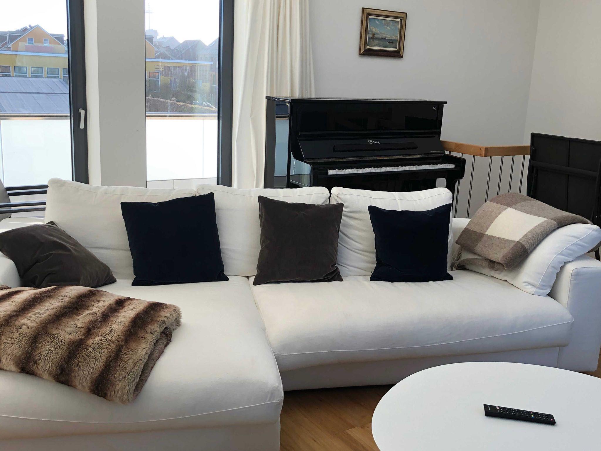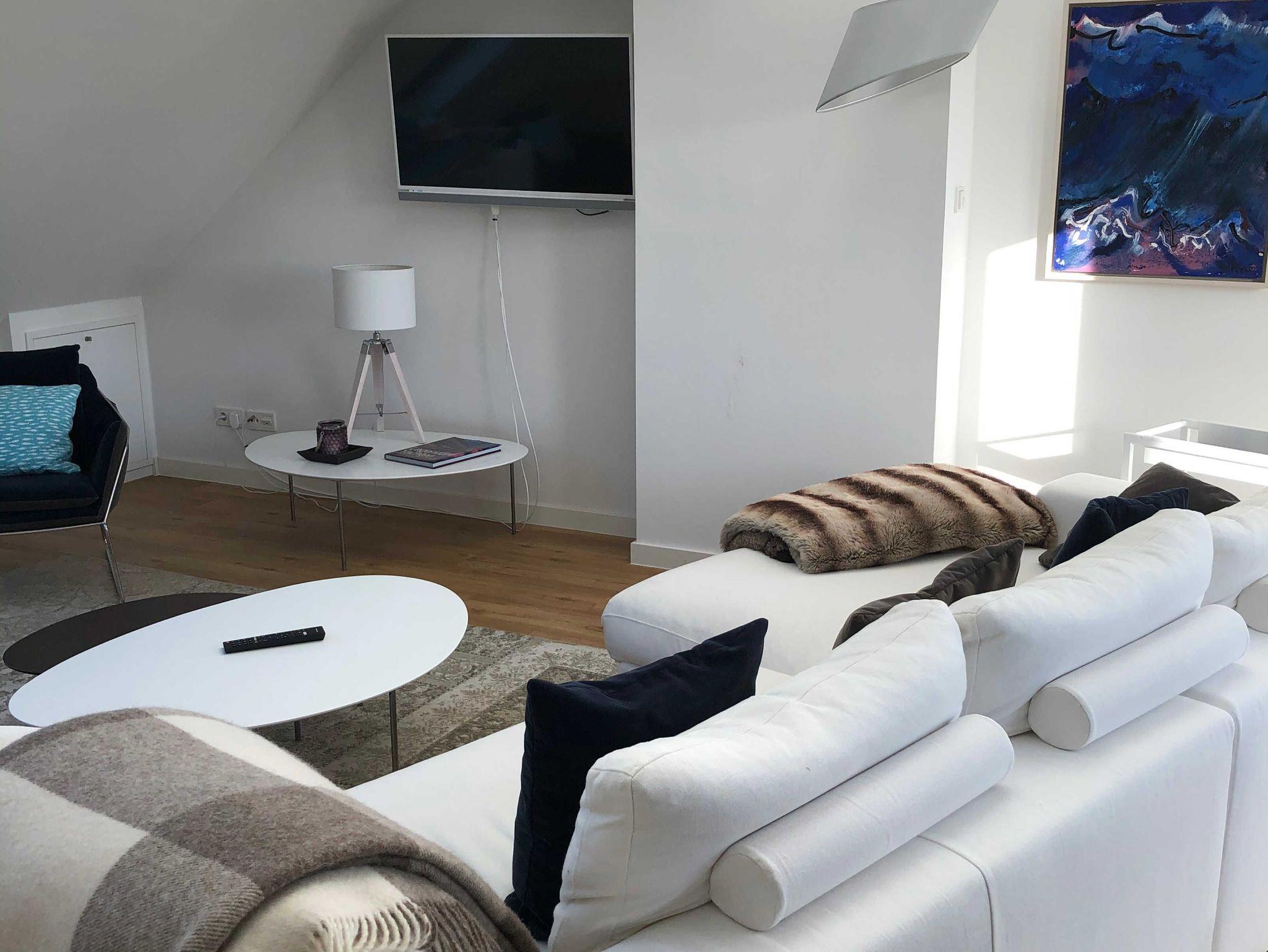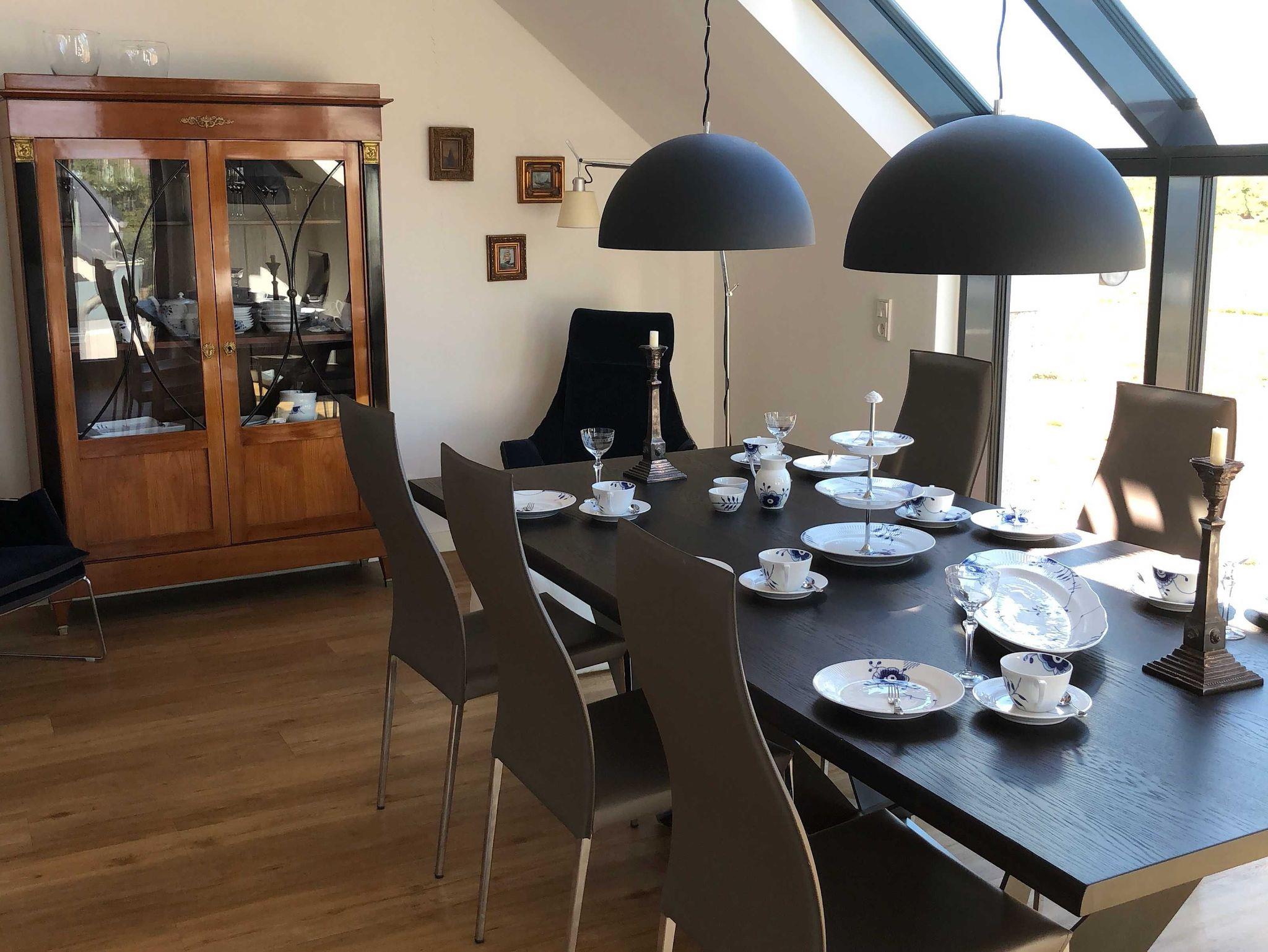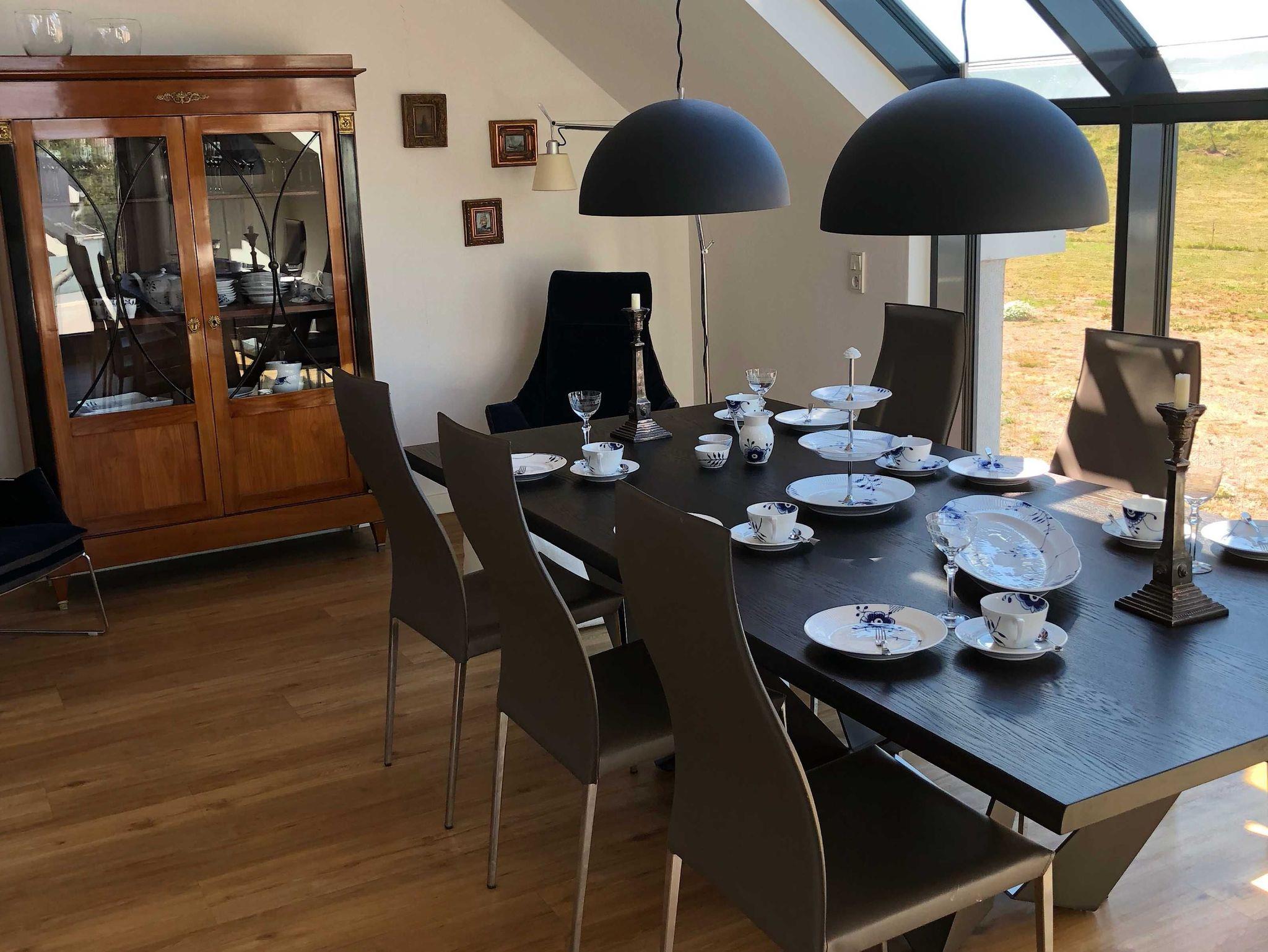 Die luxuriöse Wohnung hat ca. 79 qm Wohnfläche und verfügt in der unteren Etage über eine komplett ausgestattete Küche mit Geschirrspüler, einen großzügigen Essbereich mit Blick auf das Meer und ins Grüne, gestaltet wie ein Wintergarten. Bad mit Dusche und WC, (Waschmaschine und Trockner), Schlafzimmer mit einem komfortablen Doppelbett. Im Studio in der oberen Ebene befindet sich ein Wohn/Schlafbereich (ein Schlafplatz) mit Blick auf die Nordsee durch das Panoramadachfenster und Zugang zur Dachterrasse mit Blick auf den Leuchtturm, das Oberland und die Düne. WLAN, TV (3 x) und Radio/Dockingstation stehen zur Verfügung. Bettwäsche und Handtücher sind inklusive und werden bei längeren Aufenthalten gewechselt.