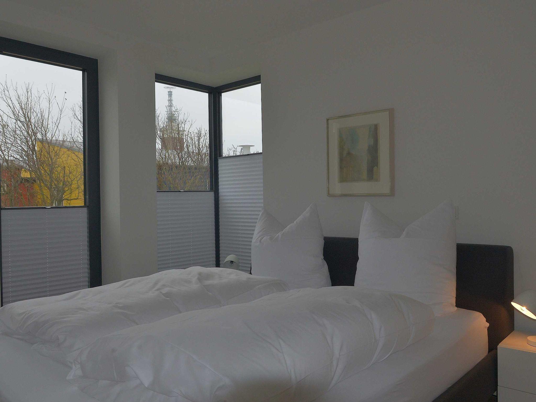 Schlafzimmer hat ein komfortables Doppelbett, Duschbad und WC sind separat.