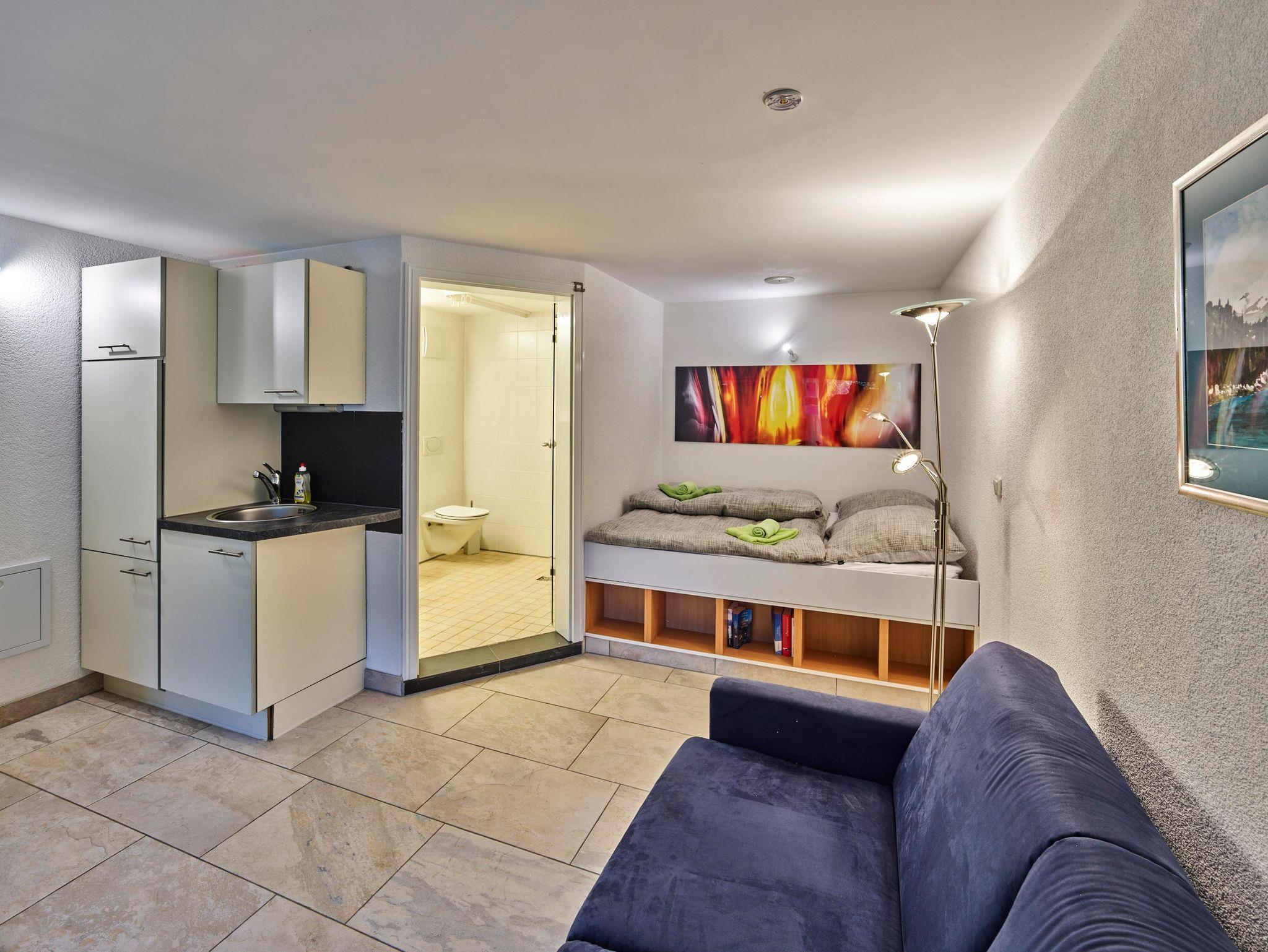 Das Appartement verfügt über eine vollausgestattete kleine Küchenzeile mit einem offenem Wohn- und Essbereich, einem Schlafsofa sowie ein Schlafbereich mit einem Doppelbett. Sie haben direkten Zugang zum Garten, in dem sich Sitzgelegenheiten befinden. Hier können nicht nur die Kleinsten die Sonne genießen, auch die Vierbeiner fühlen sich hier wohl.