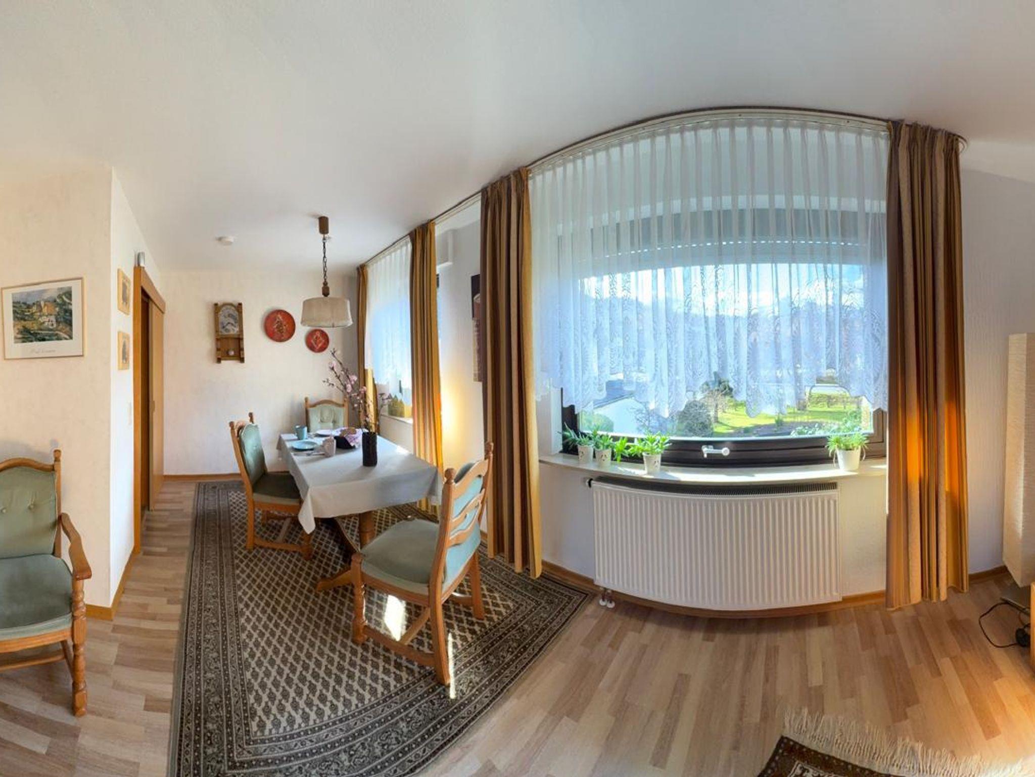 Sie bietet vom Wohnzimmerfenster aus freien Blick auf das Burgpanorama.