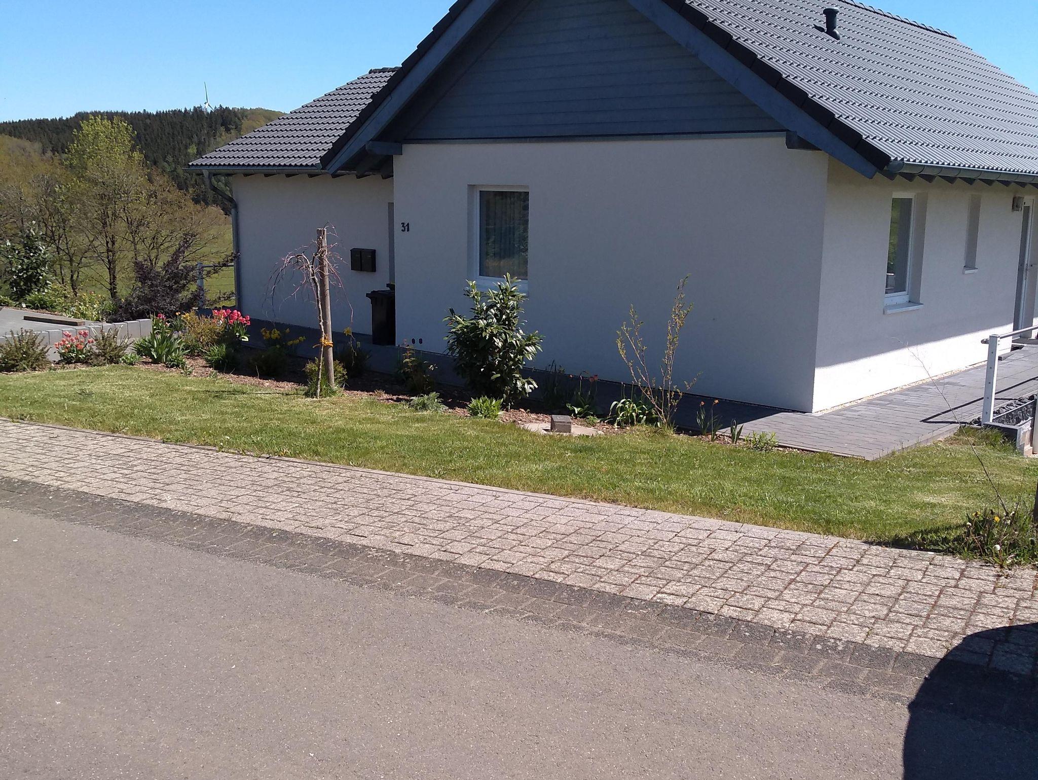Bei unserem Haus handelt es sich um ein in 2018 neu errichtetes Haus mit insgesamt zwei barrierefreien getrennten Wohnungen am Rande des Nationalparks Eifel. Eine davon steht als Ferienwohnung zur Verfügung. Das Haus liegt in der Gemeinde Hellenthal in ruhiger Lage am südlichen Rand der Ortslage Wolfert und bietet ungehinderte Aussicht auf die umliegende Landschaft. Diese lädt zu ausgiebigen Rad- und Wandertouren ein oder einfach nur zu Ruhe und Entspannung.